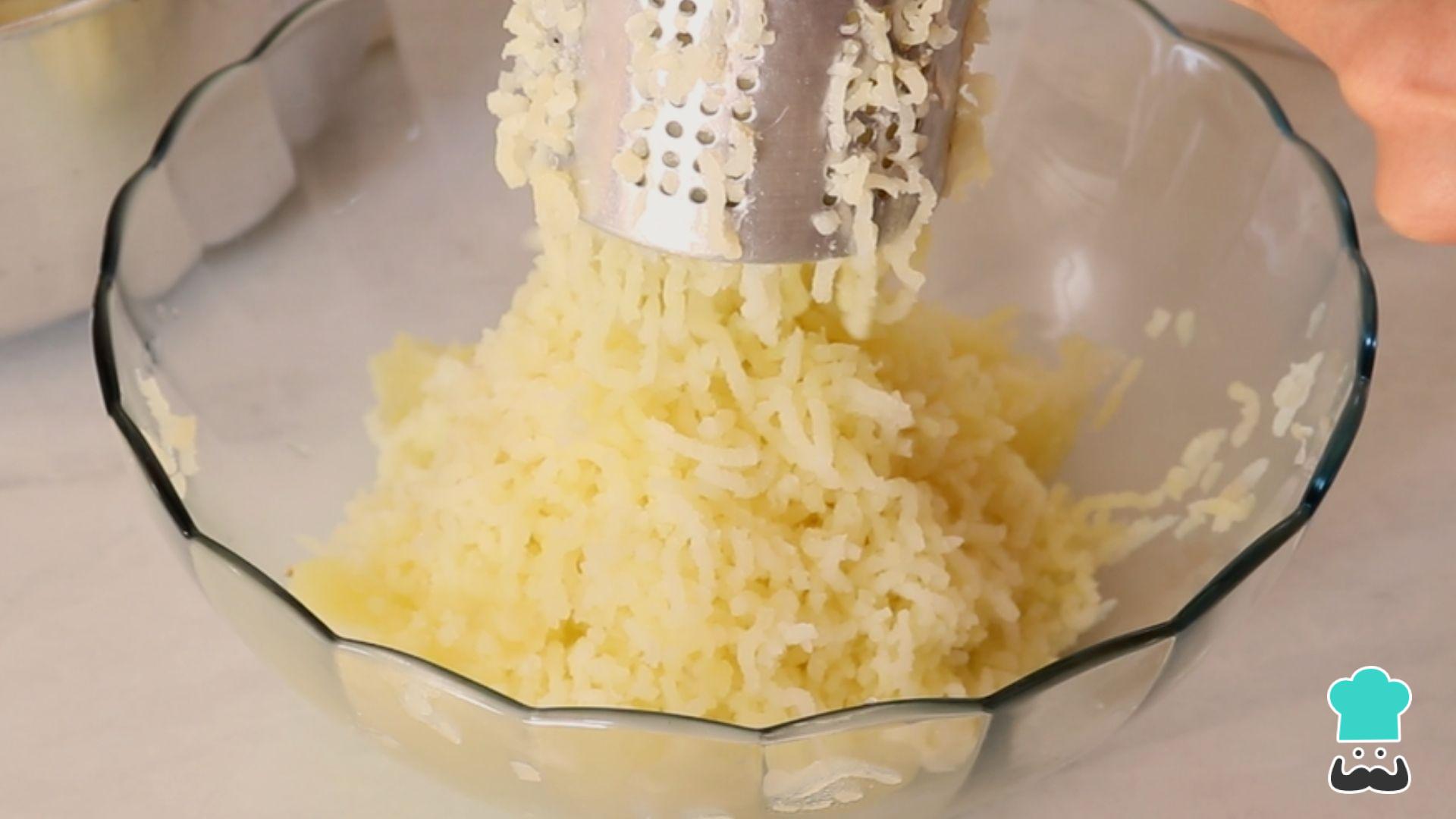Escorra a água e passe as batatas ainda quentes pelo espremedor - é fundamental fazer essa etapa enquanto as batatas estão quentes, assim o purê ficará bem lisinho.