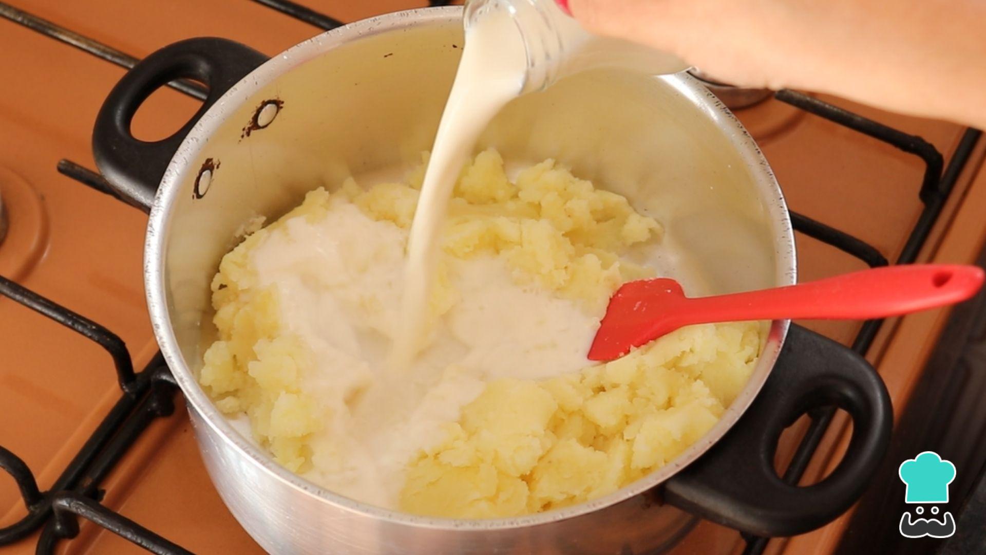 Atenção nessa etapa: para o purê não empelotar, é fundamental que o leite esteja morno!