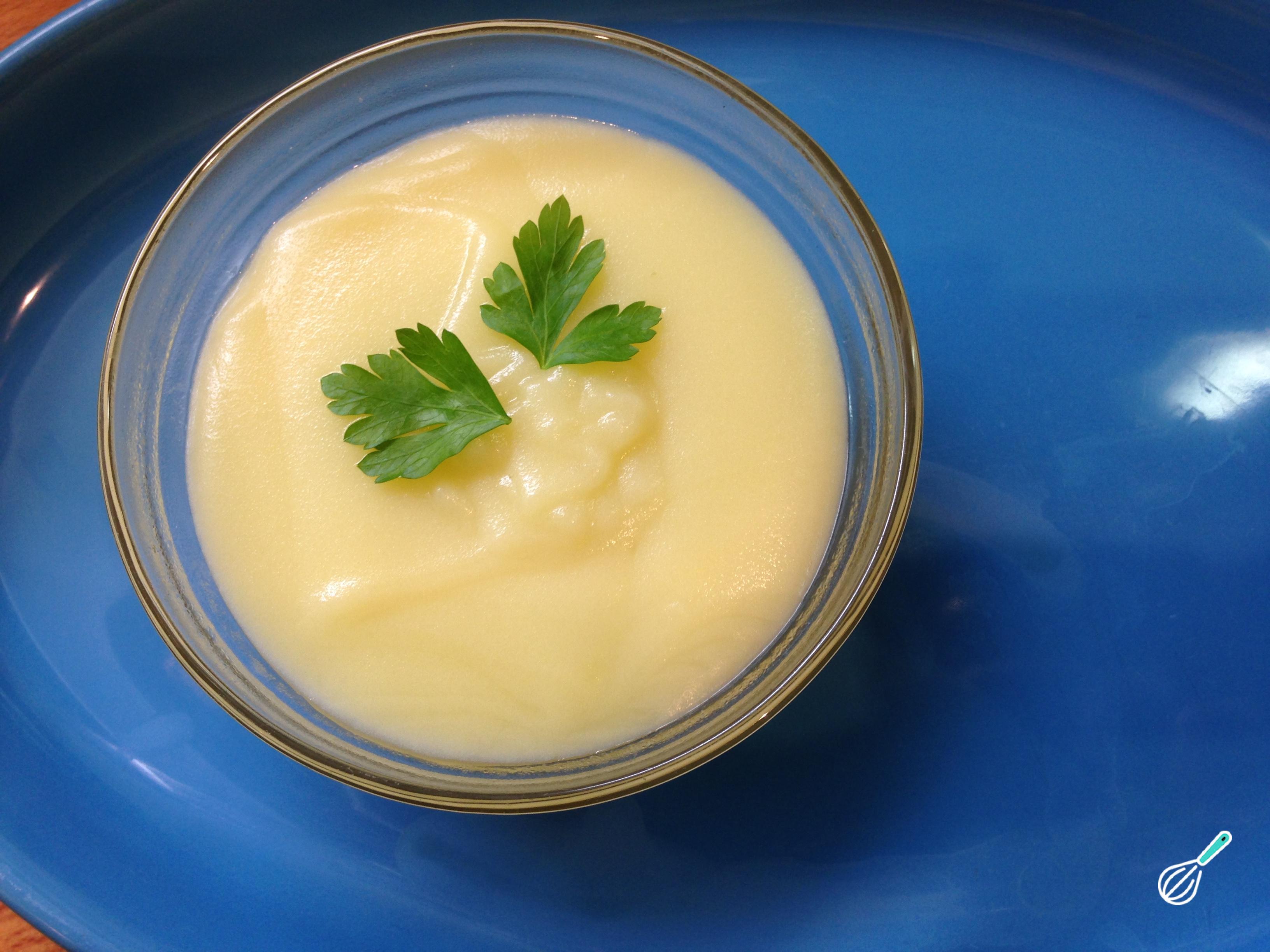 Para preparar o purê de batata sem lactose comece por reunir os ingredientes. Nesta receita substituímos o leite por caldo caseiro de legumes. Se optar por um caldo pronto, certifique-se de que não contém conservantes nem lactose.