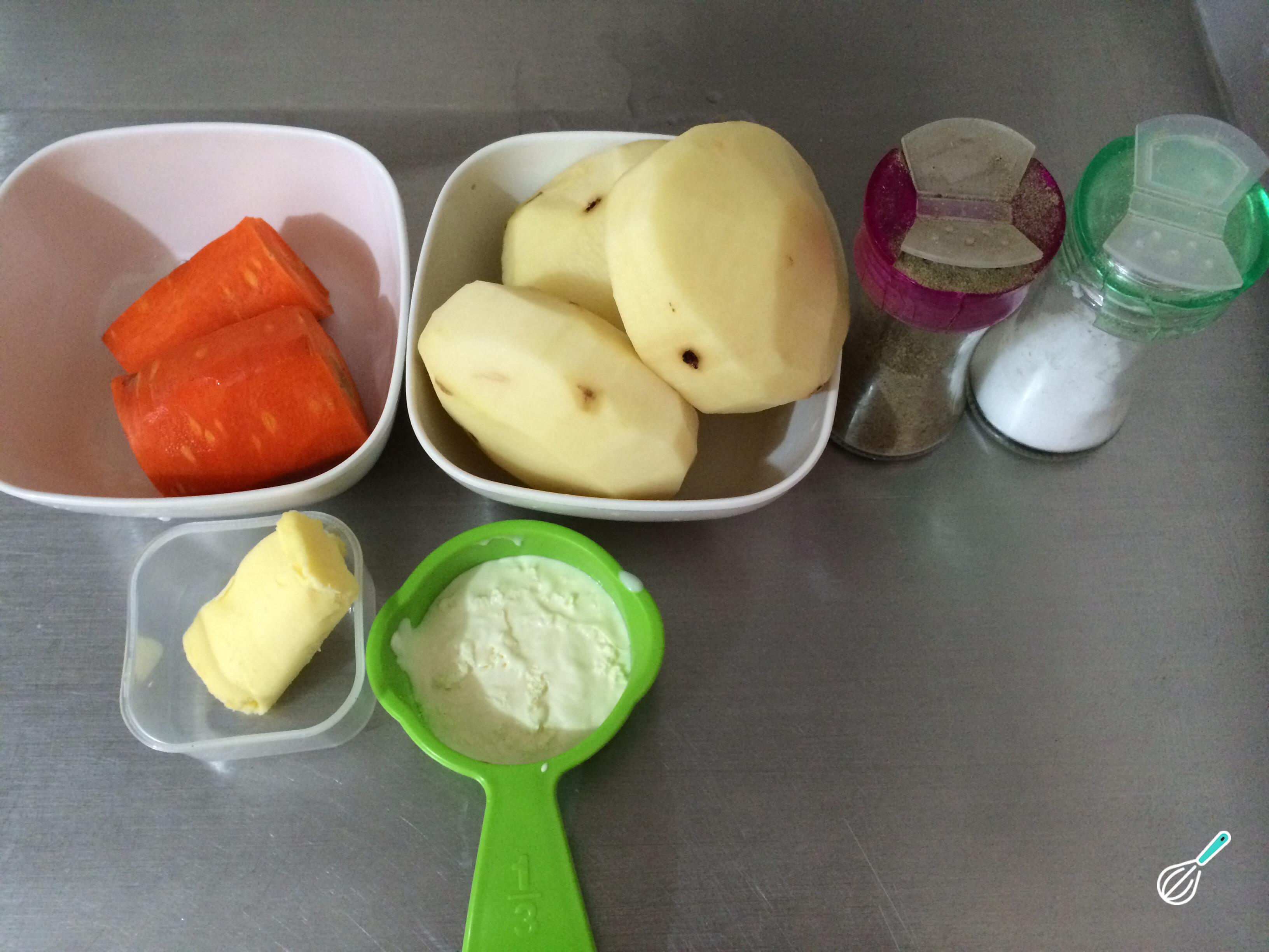 Antes de fazer o purê de batatas com cenoura, o primeiro passo é preparar todos os ingredientes.