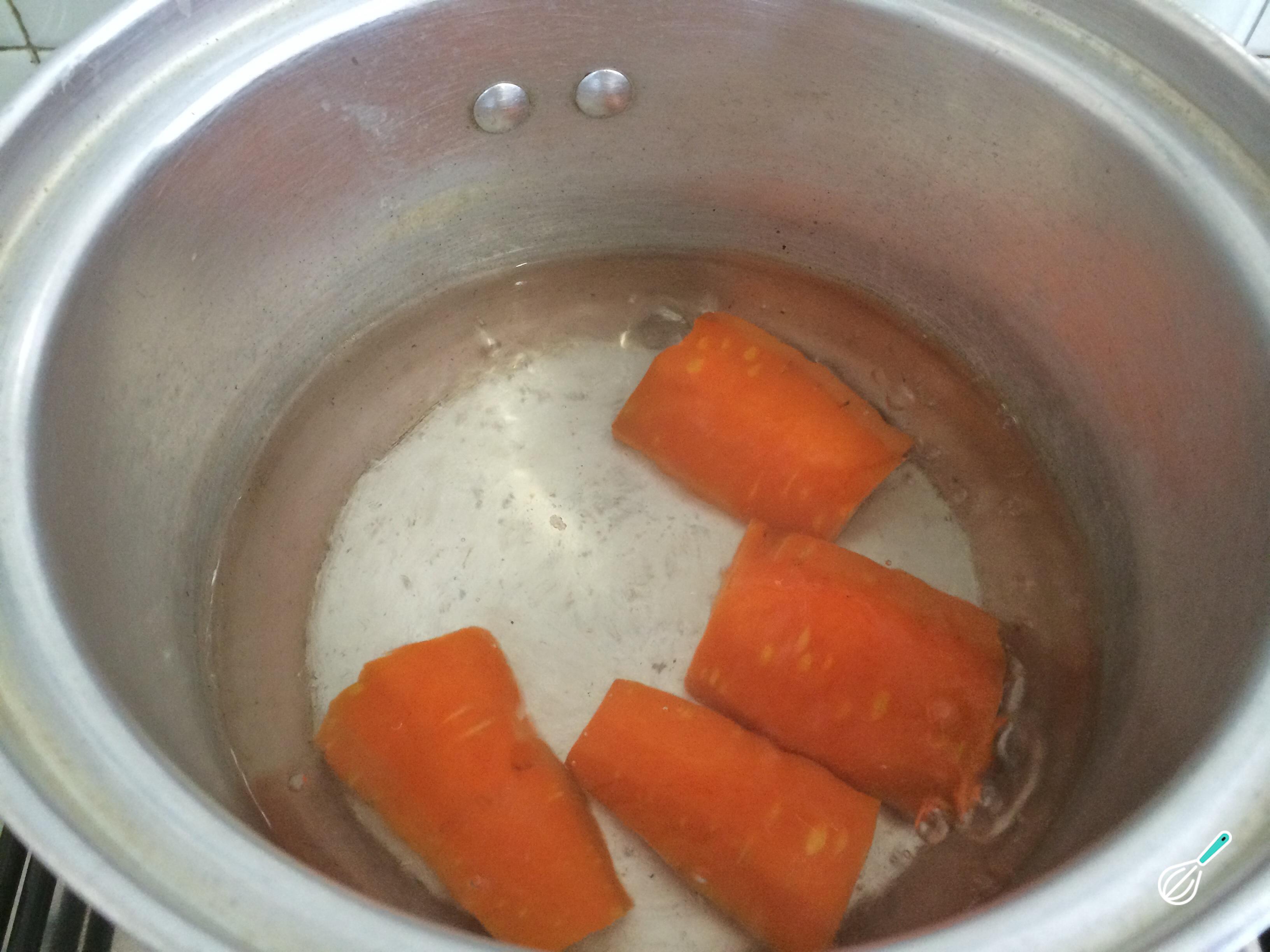 Em outra panela, cozinhe (com a água já fervendo) a cenoura por 30 minutos. Assim que estiver pronta, reserve a água do cozimento.