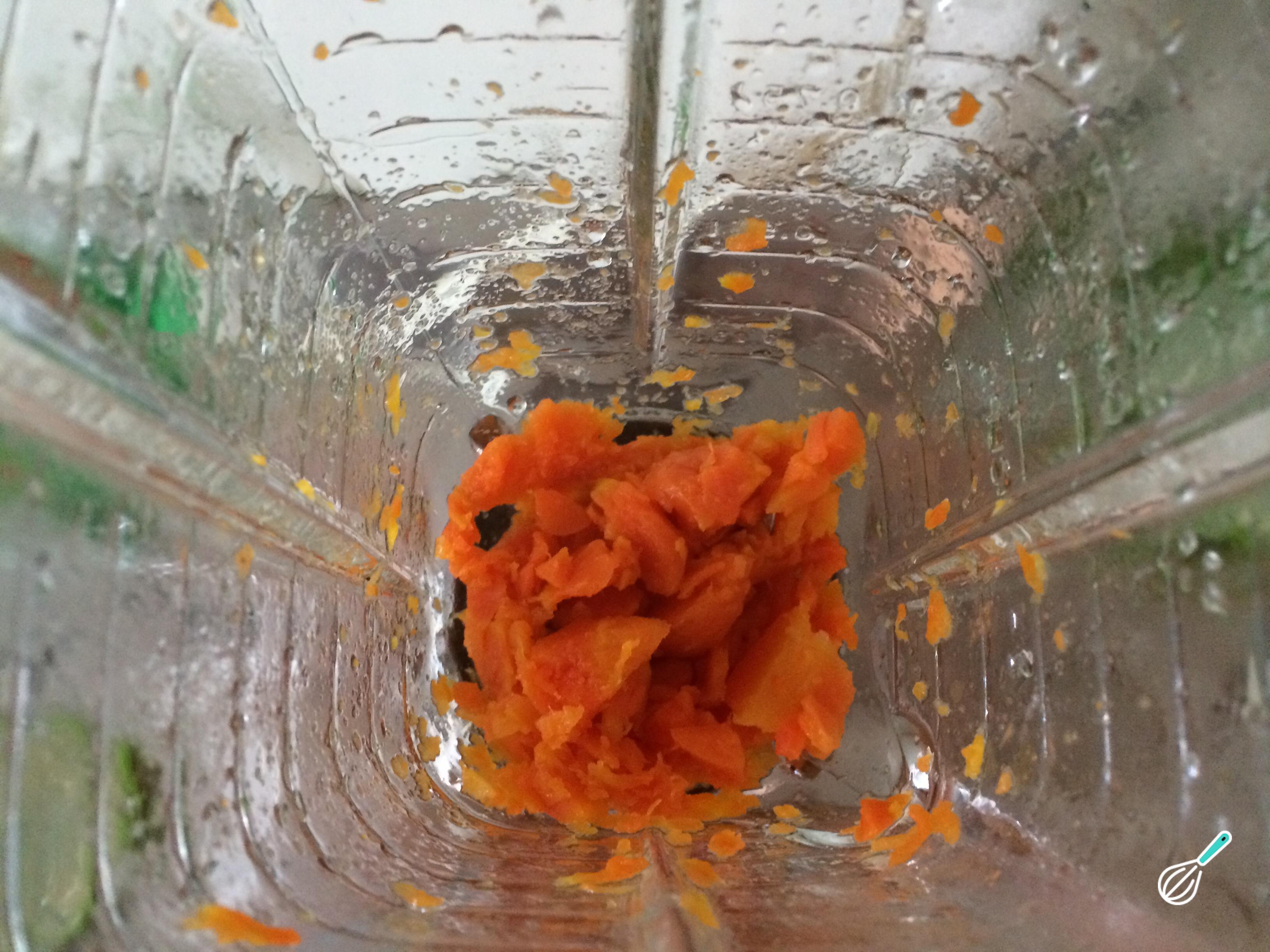 Coloque a cenoura no liquidificador juntamente com um pouco da sua água de cozimento. Bata até obter uma consistência homogênea.