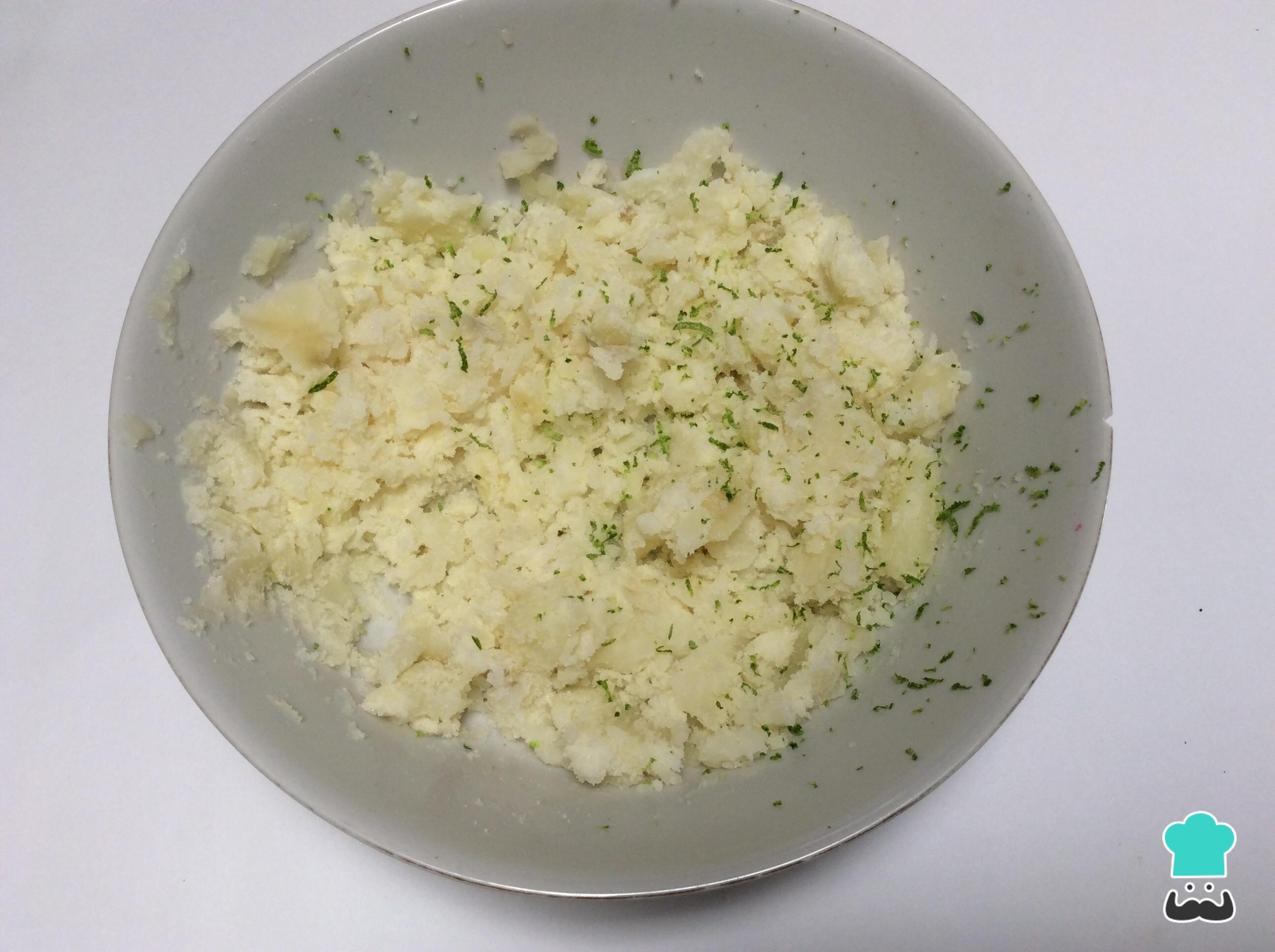 Quando as batatas estiverem bem macias, retire da água e amasse-as com um garfo ou outro utensílio. É aqui que a receita de purê de batatas com limão se torna diferente: adicione as raspas dos limões e o suco, e retifique o sabor com sal e pimenta.
