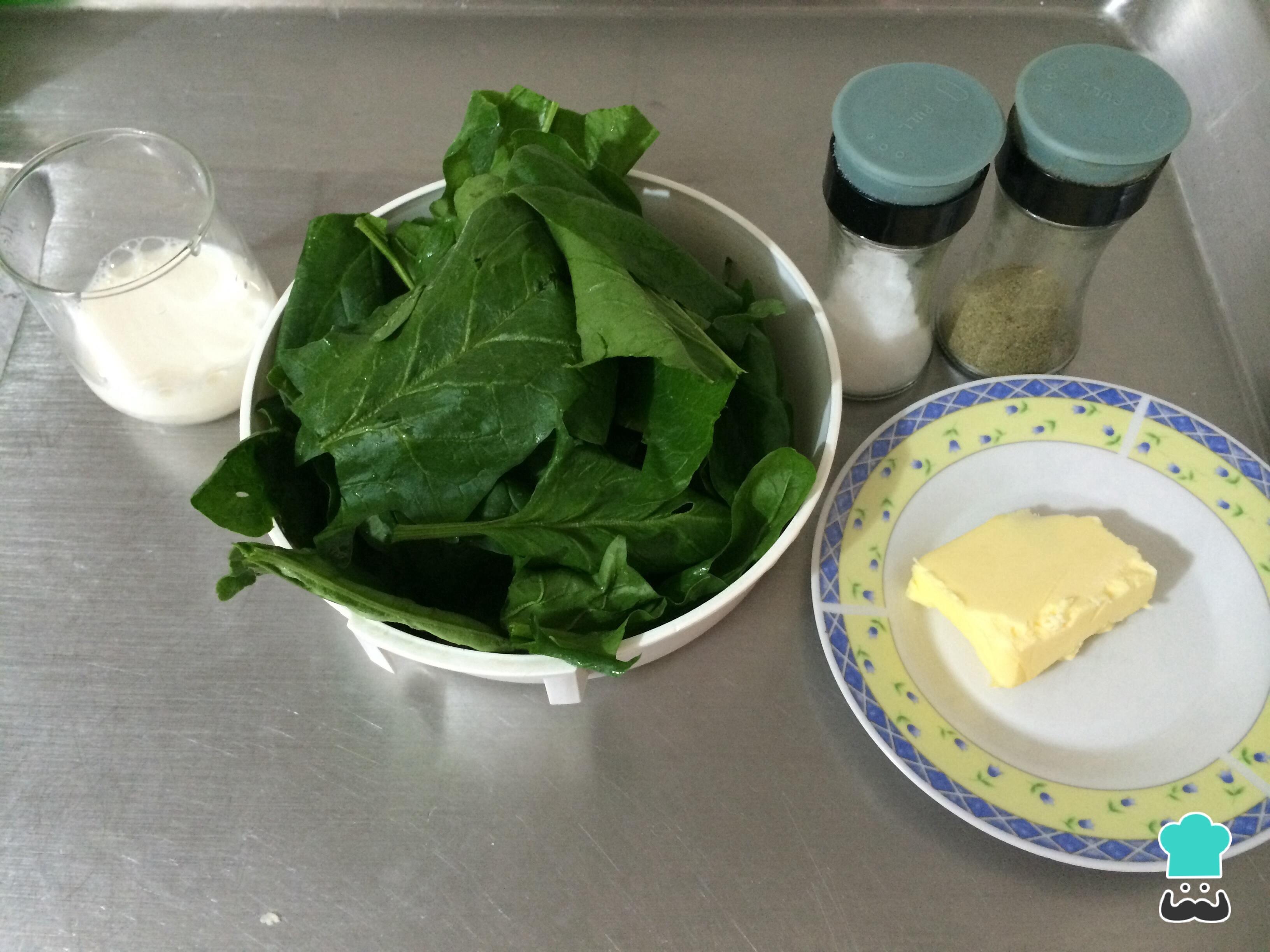 Antes de fazer esta receita de purê de espinafre para bebês, o primeiro passo é preparar todos os ingredientes.