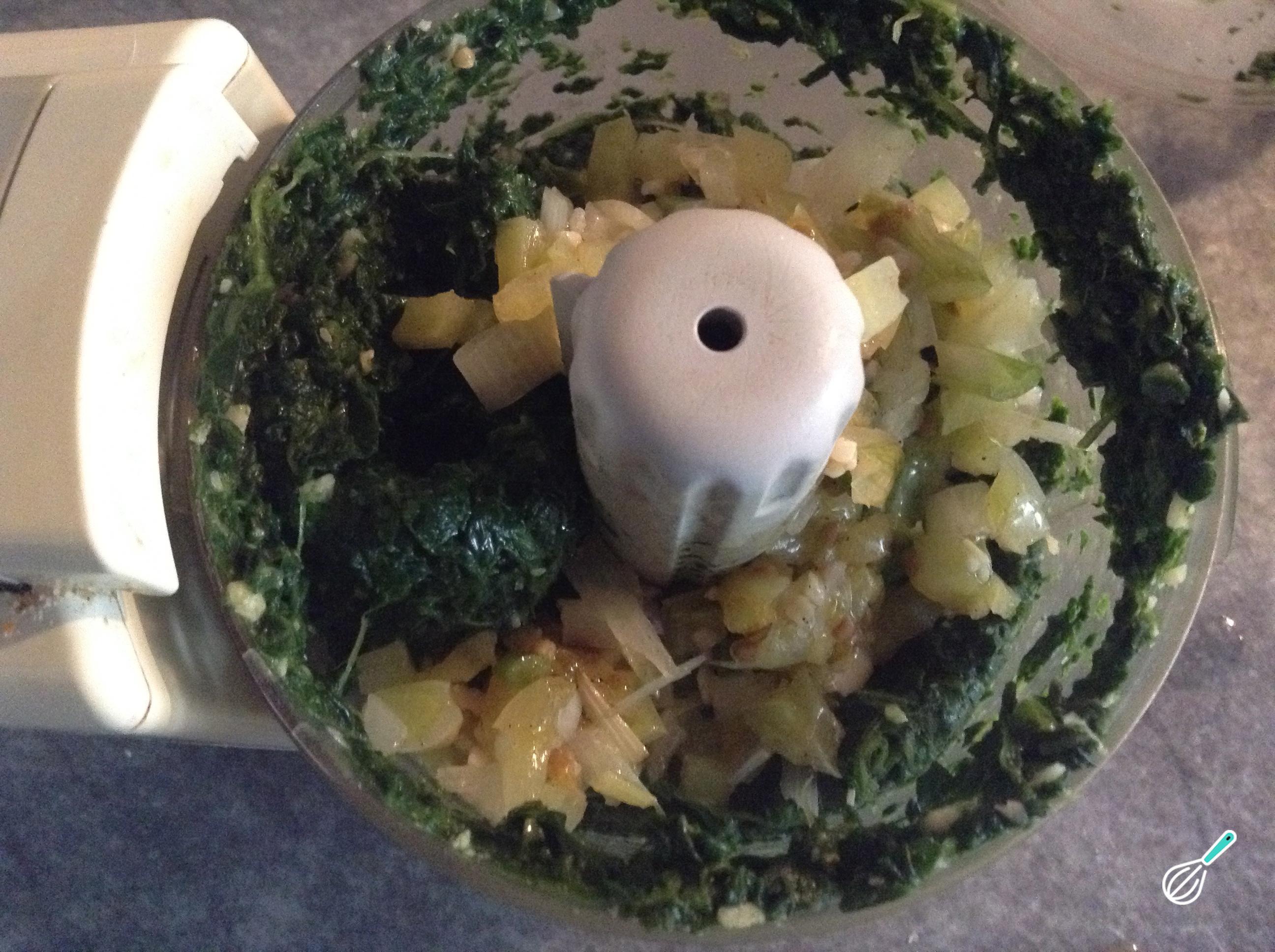 Quando os ingredientes anteriores estiverem bem macios, adicione-os aos espinafres processados e volte a bater muito bem.