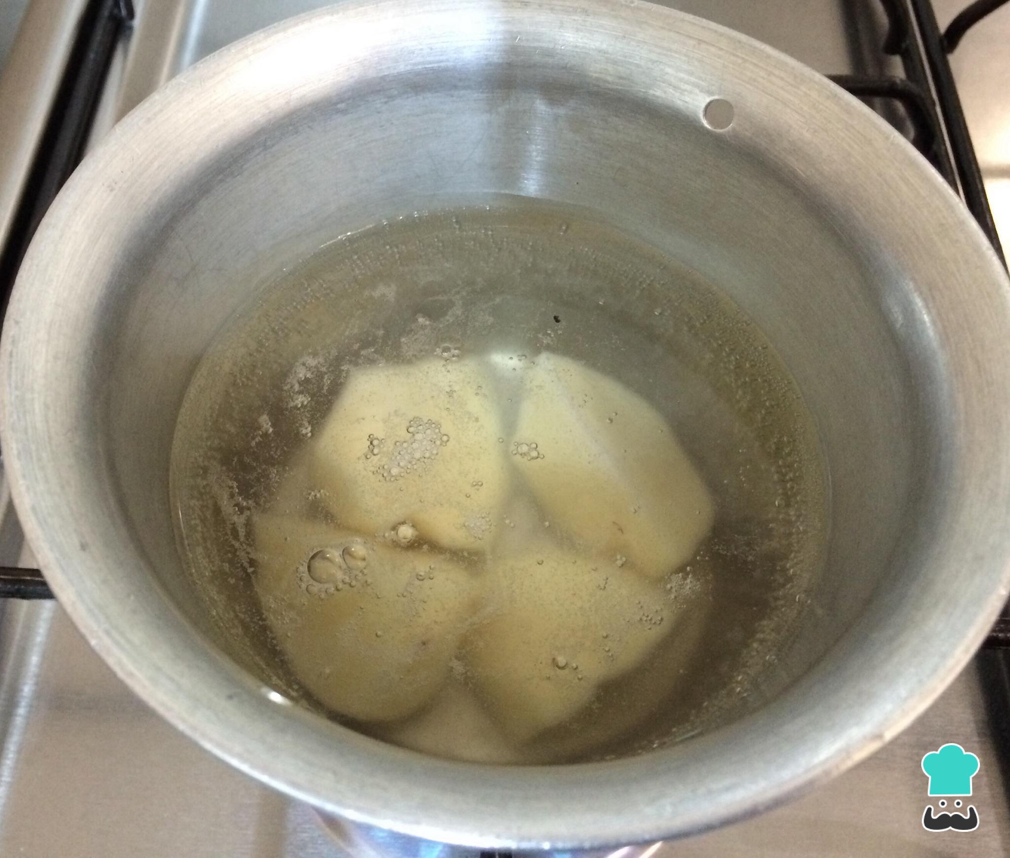 Repita o procedimento com as batatas, descascadas e cortadas em pedaços, cozinhando-as por 15 minutos.