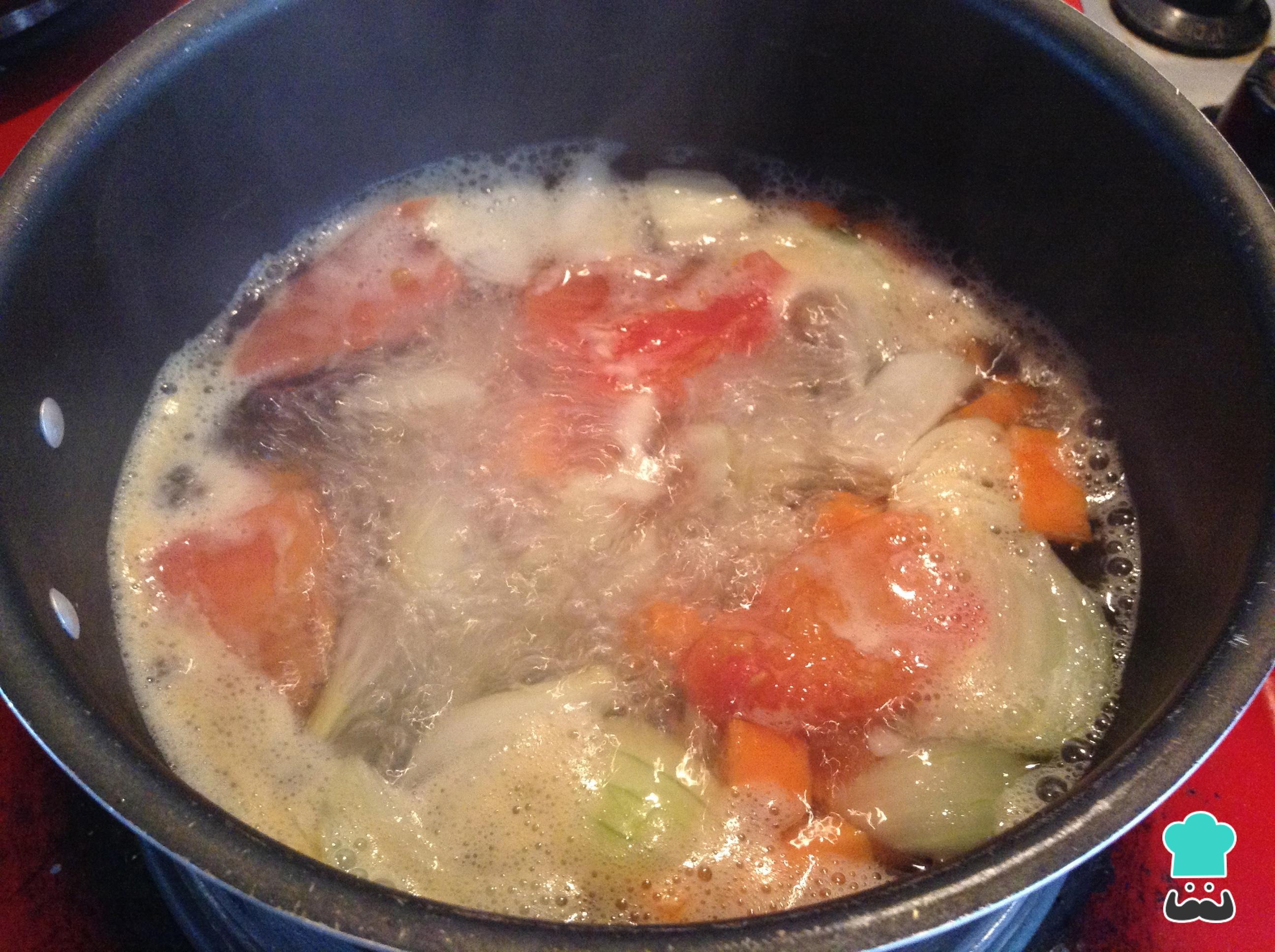 O próximo passo do purê de lentilhas para bebês é, enquanto as lentilhas cozinham, levar ao fogo alto uma panela com água. Quando ferver, adicione os restantes legumes descascados e cortados em pedaços, e cozinhe por 10 a 15 minutos.