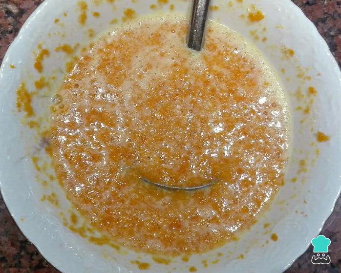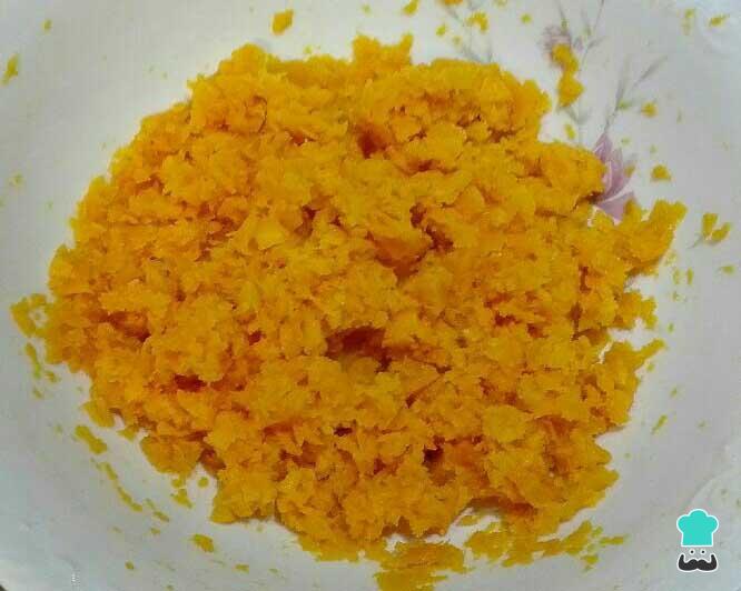 Descasque as cenouras, corte aos pedaços e coloque cozinhando numa panela com água e a casca de limão. Quando a cenoura estiver macia escorra a água, retire a casca de limão e amasse as cenouras em purê.