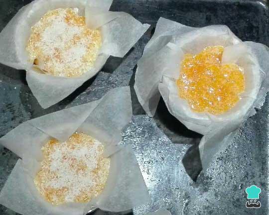 Forre várias forminhas com pedaços de papel manteiga e distribua a mistura do docinho de cenoura nelas. Leve ao forno pré-aquecido a 180°C e deixe ficar por 30-40 minutos ou até dourarem.