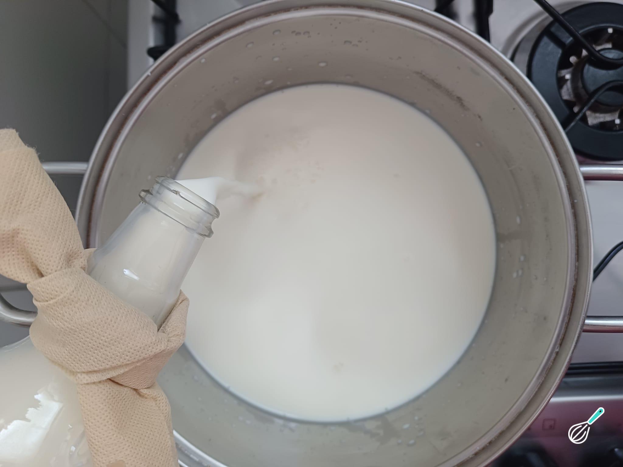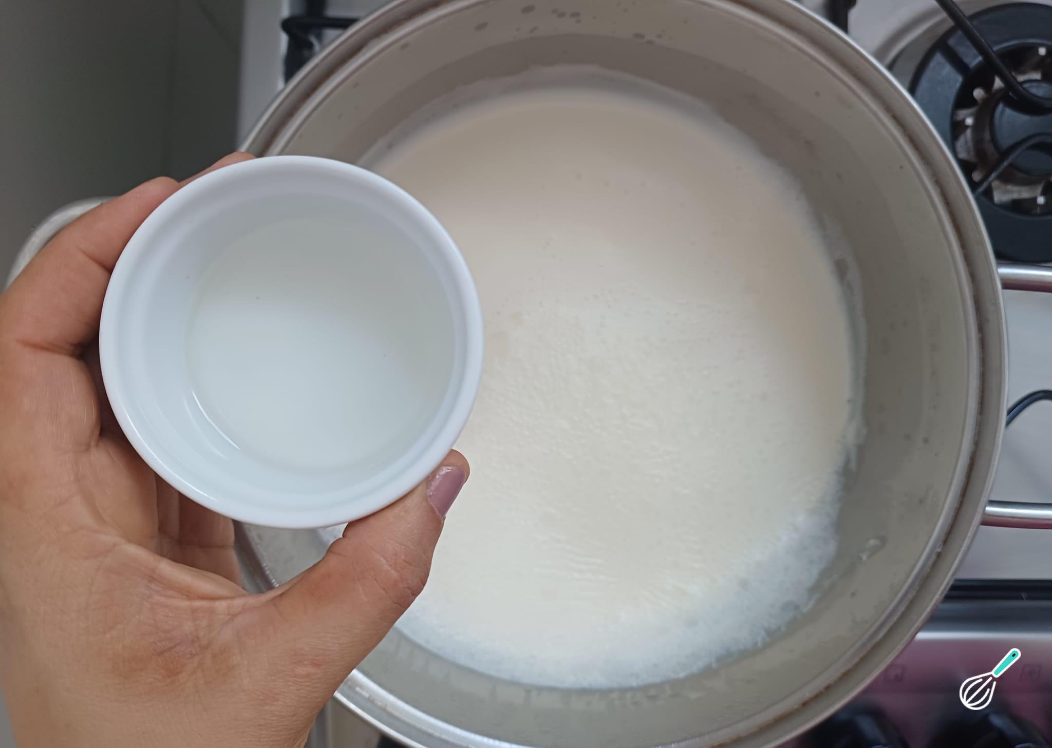 Coloque o vinagre para talhar o leite.