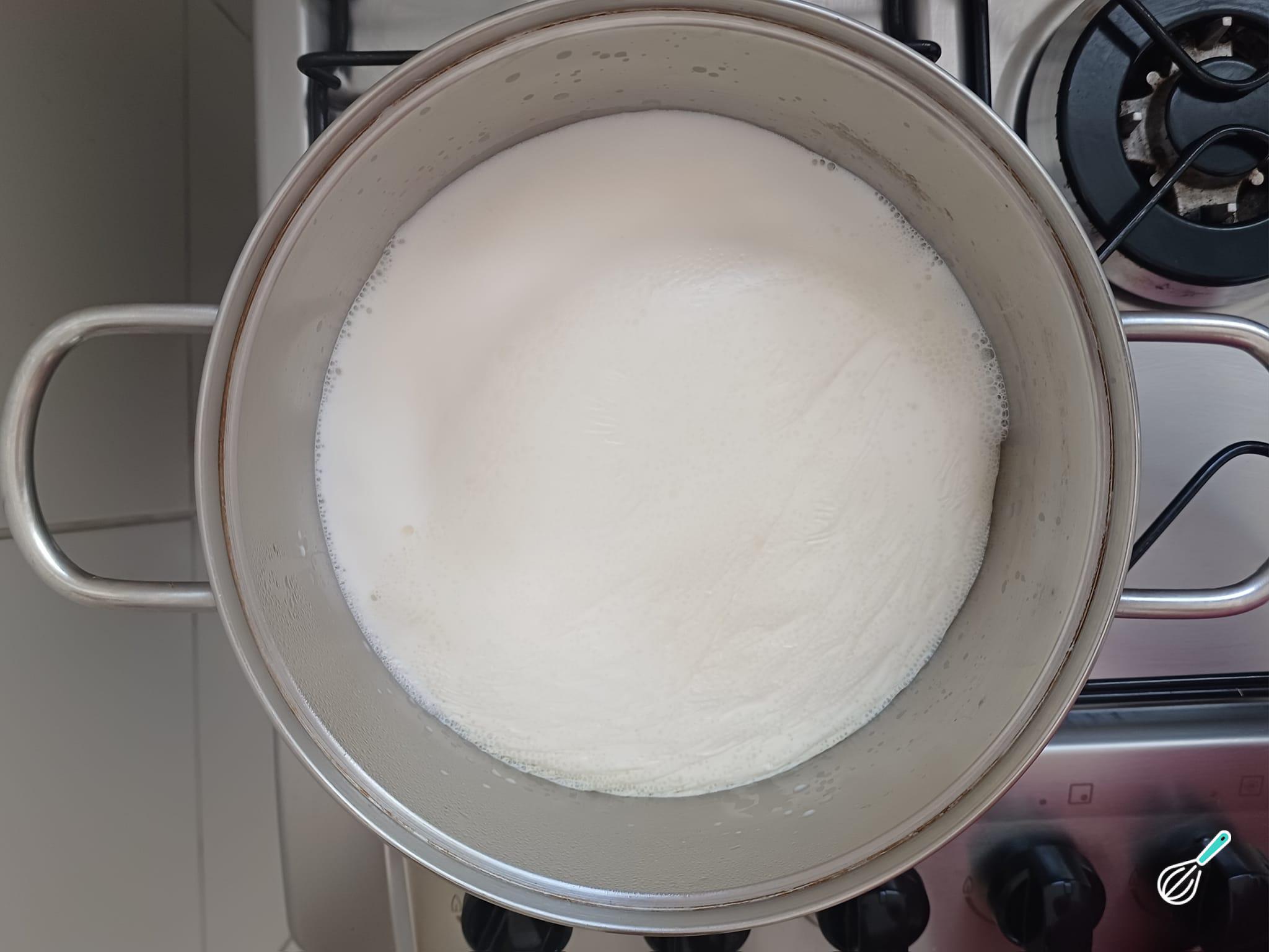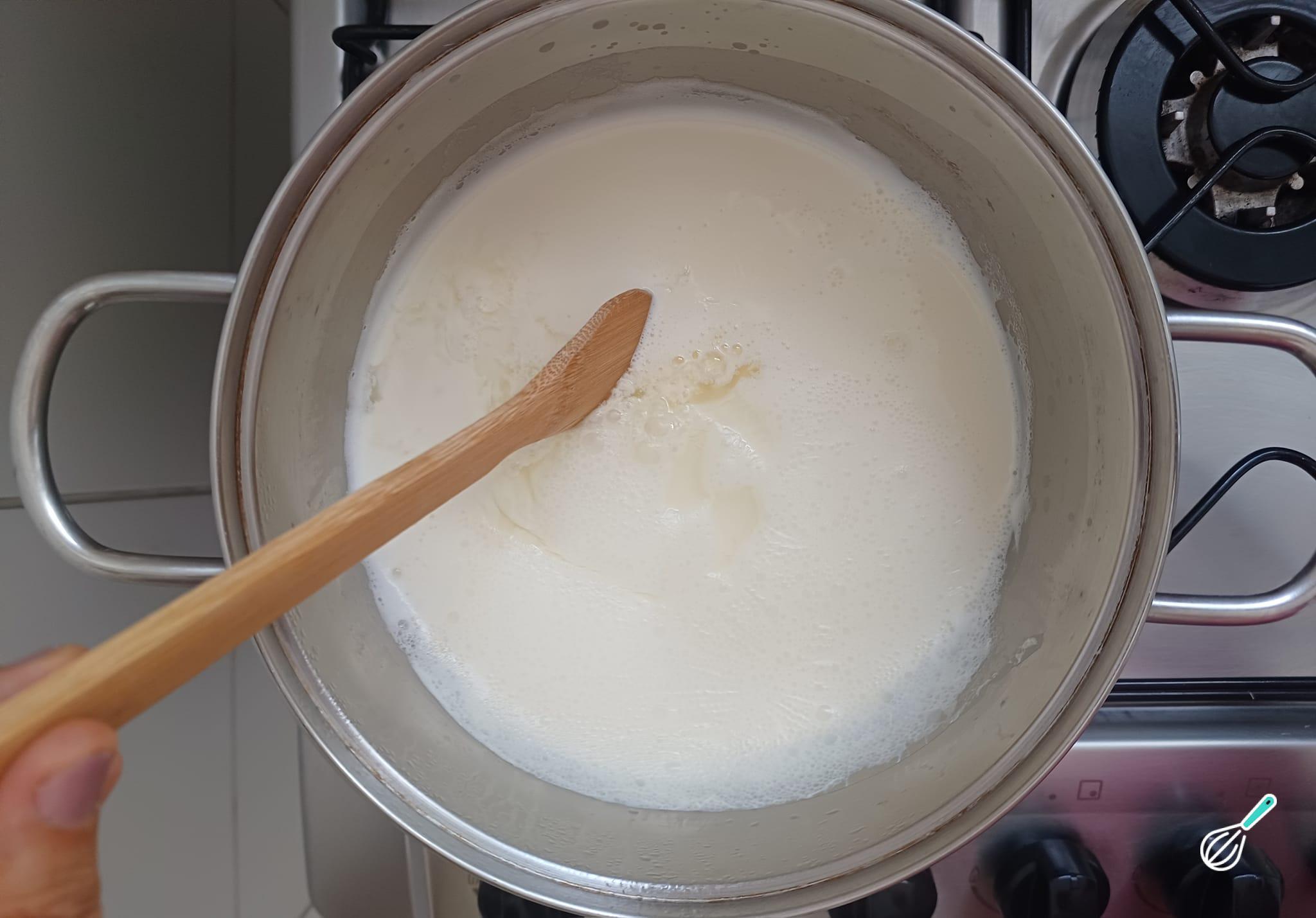 Espere o leite ferver e assim que isso acontecer, desligue o fogo.