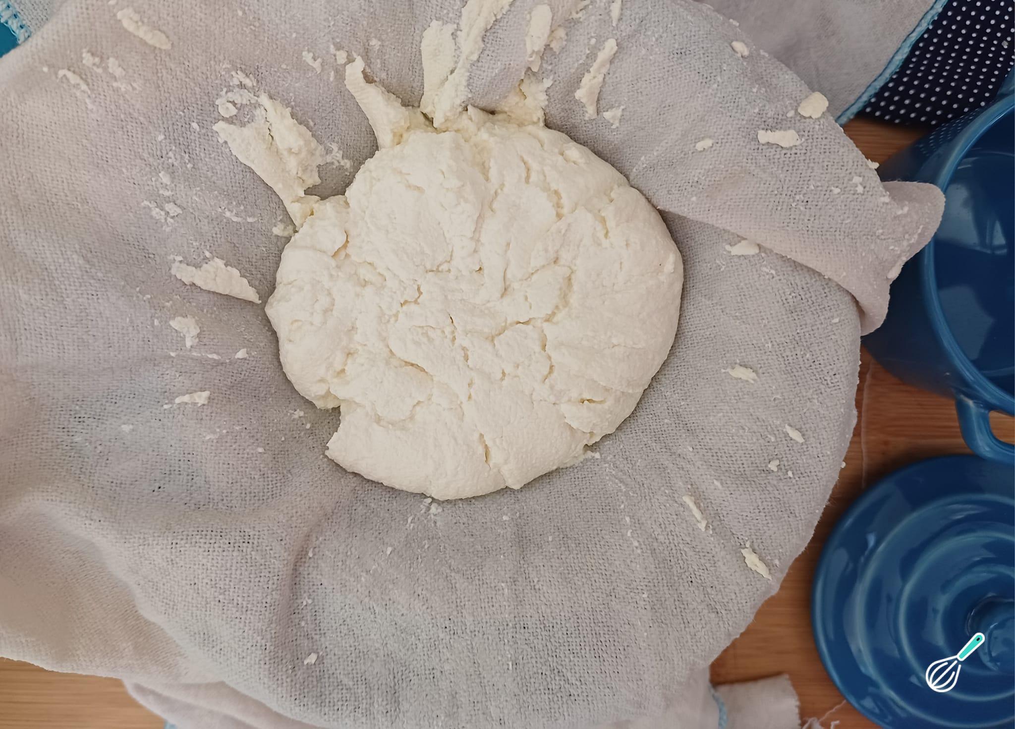 Torça o pano para extrair o soro, mas não totalmente pois o queijo poderá ficar ressecado.