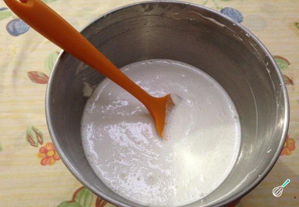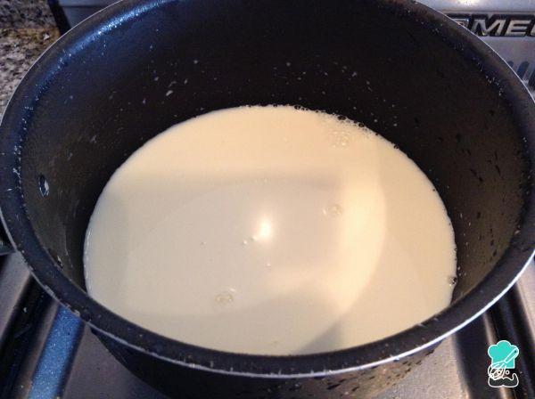 Depois do leite ferver, adicione o vinagre, a água, misture tudo muito bem e deixe descansar um pouco até ficar morno.