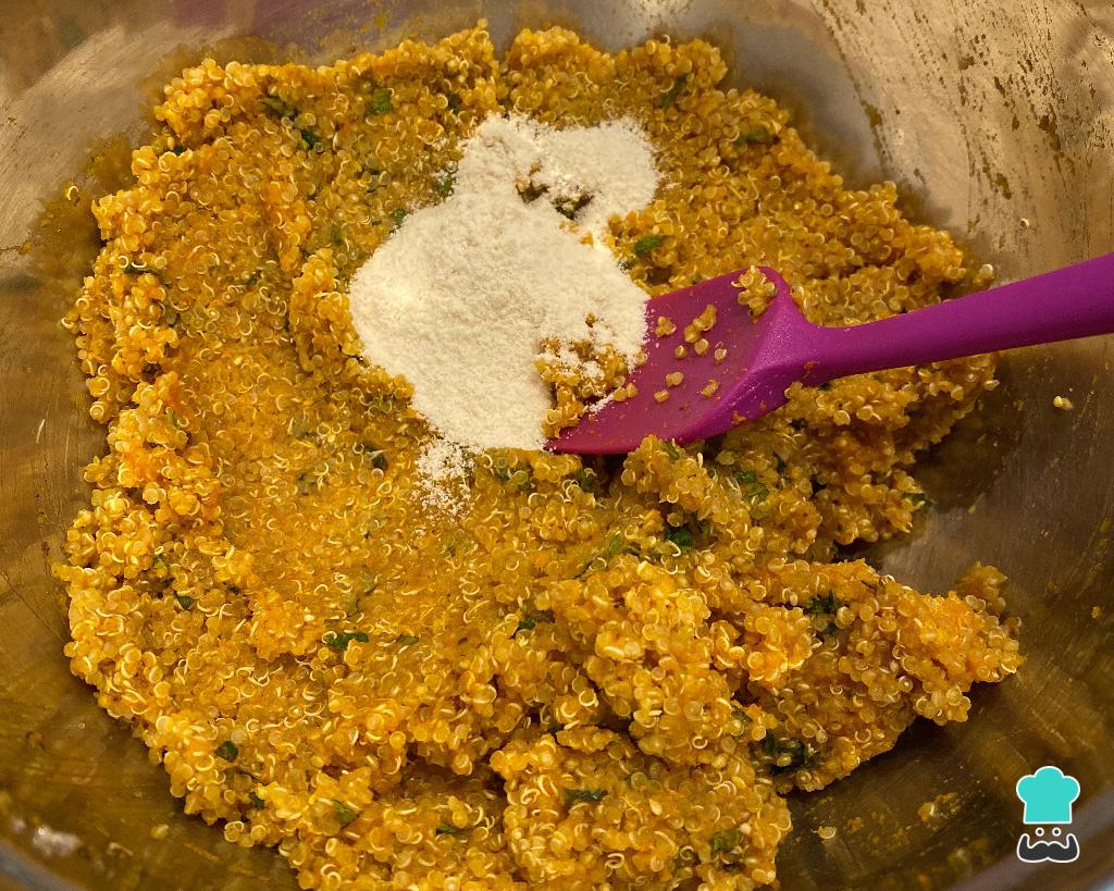 Misture a quinoa cozida com a abóbora, a hortelã, o sal, a farinha de arroz e 1 colher de chá de zaatar - veja como fazer zaatar caseiro.