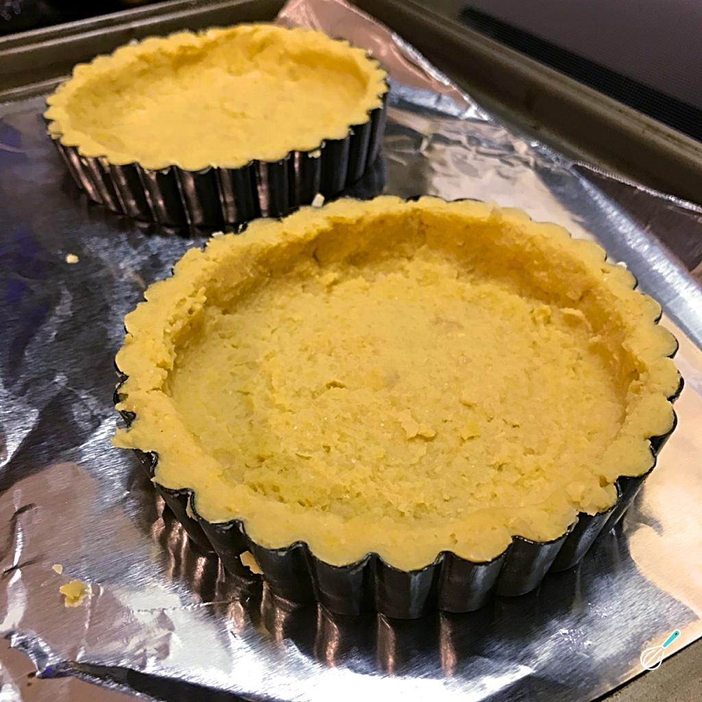 Arrume a massa em 2 mini forminhas (de preferência com o fundo removível) e leve para assar em forno pré aquecido a 200°C por 10 minutinhos.