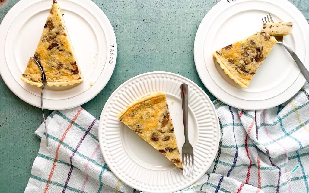 Para sair do tradicional, esta quiche de cogumelos com um toque de shoyu é perfeita!. Esta torta salgada combina a suavidade dos cogumelos frescos com uma base dourada e uma mistura de ovos e creme, criando uma combinação harmoniosa de sabores e texturas.