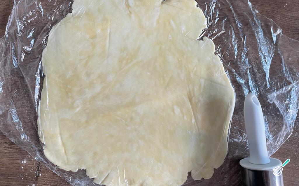 Utilizando dois sacos plásticos, abra a massa com a ajuda de um rolo.