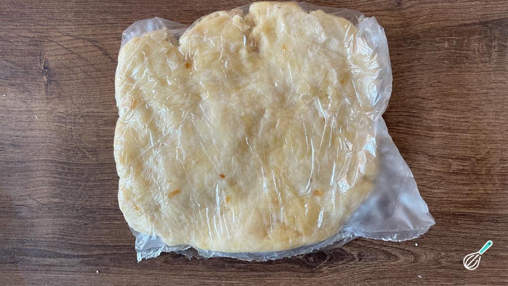 Coloque dentro de um saco plástico, abra ligeiramente a massa e leve para a geladeira por 15 minutos.