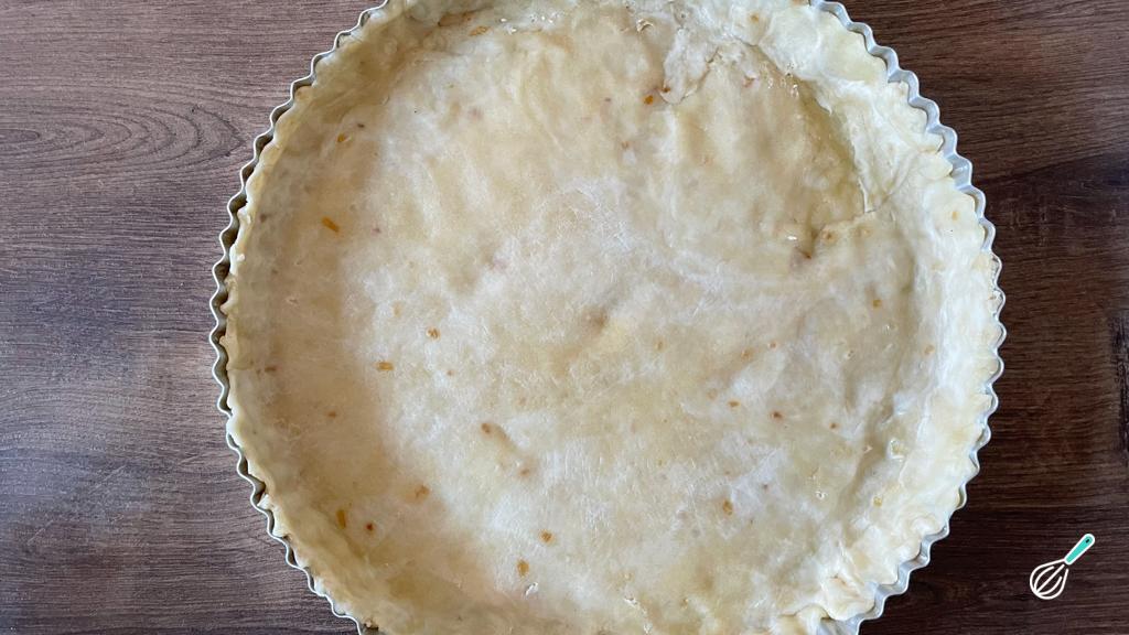 Coloque a massa sobre a assadeira e ajeite as bordas.