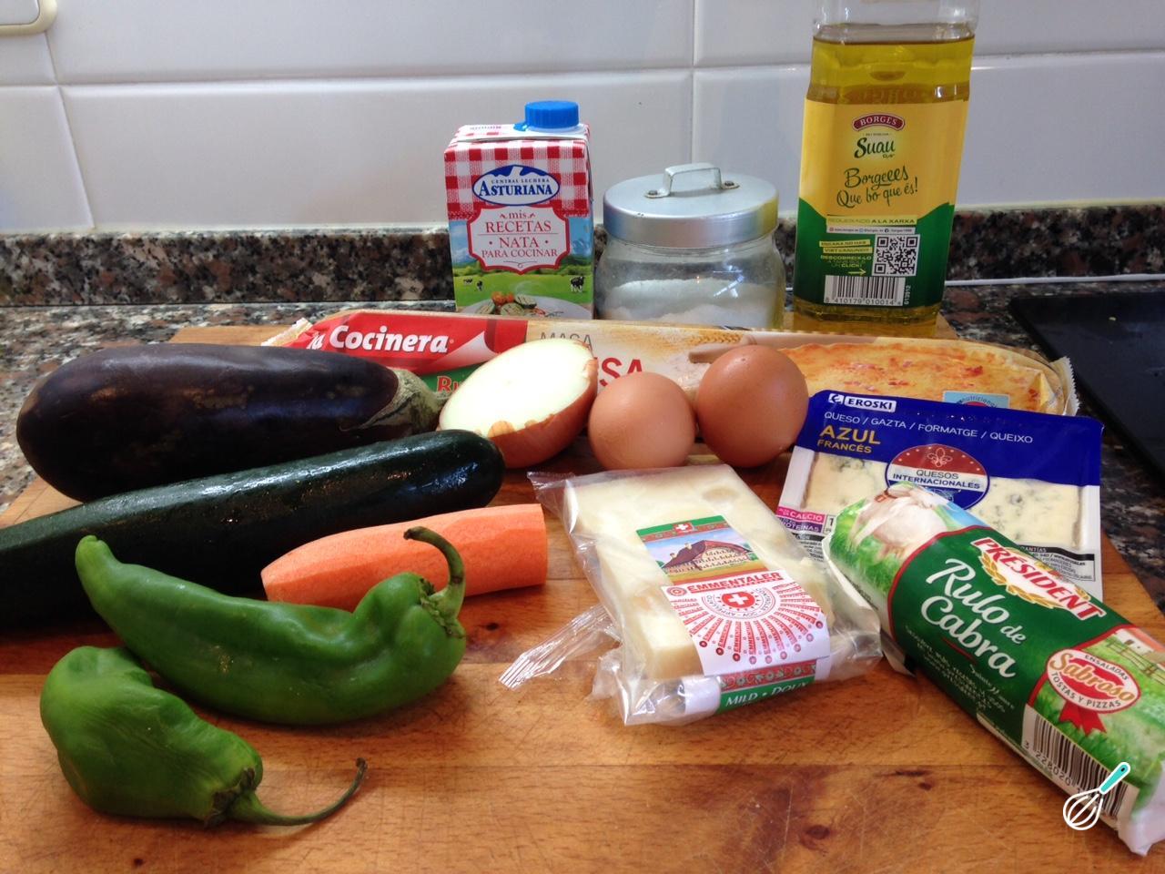 Você pode preparar massa para quiche caseira, ou comprar. Para os legumes, optei por uma combinação semelhante a um ratatouille, mas você pode substituir ou adicionar outros legumes. Os queijos também são opcionais, mas com esta combinação fica deliciosa!