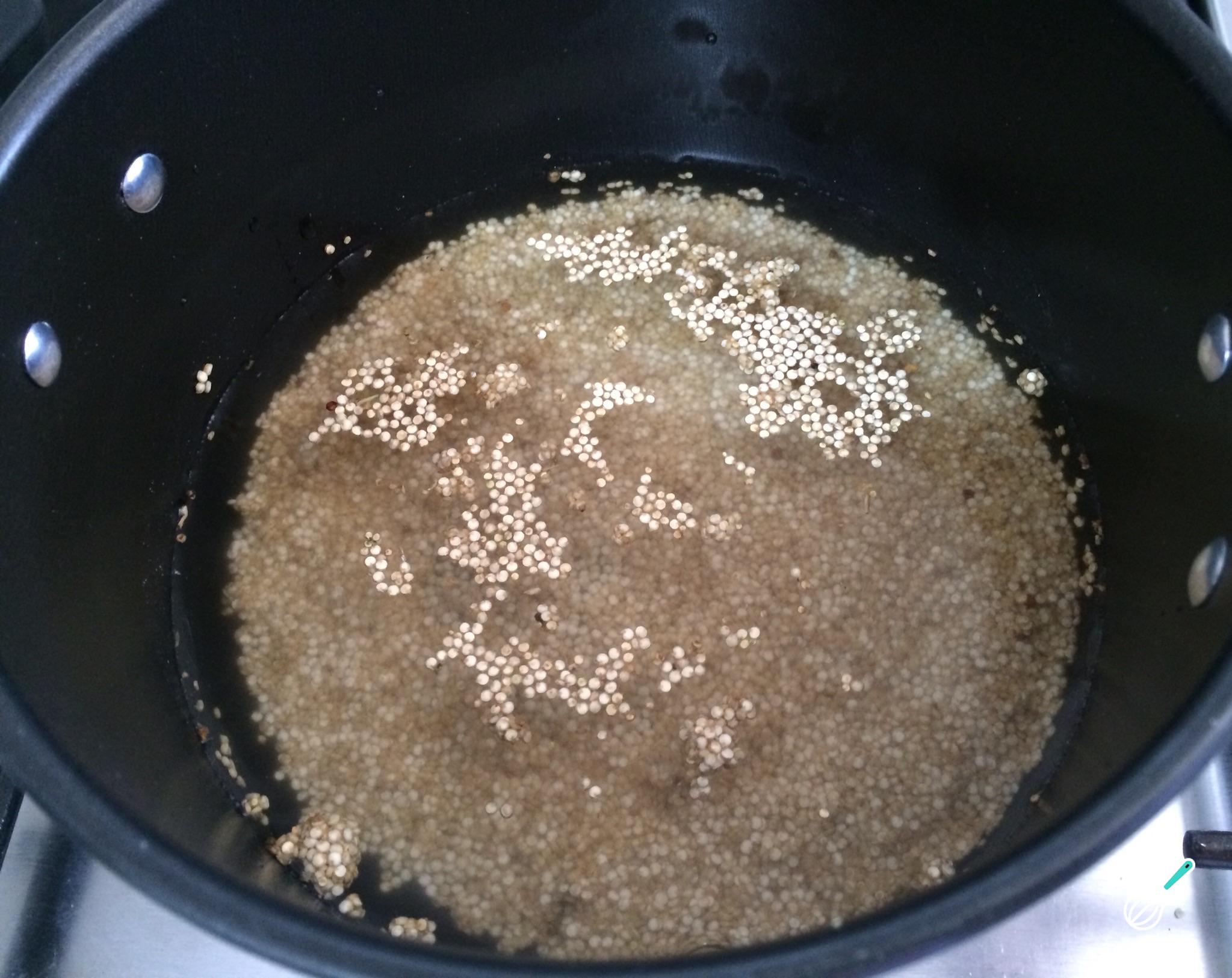 Em seguida coloque cozinhando em uma panela com 2 xícaras de água e durante 20 minutos, ou até que dobre de tamanho.