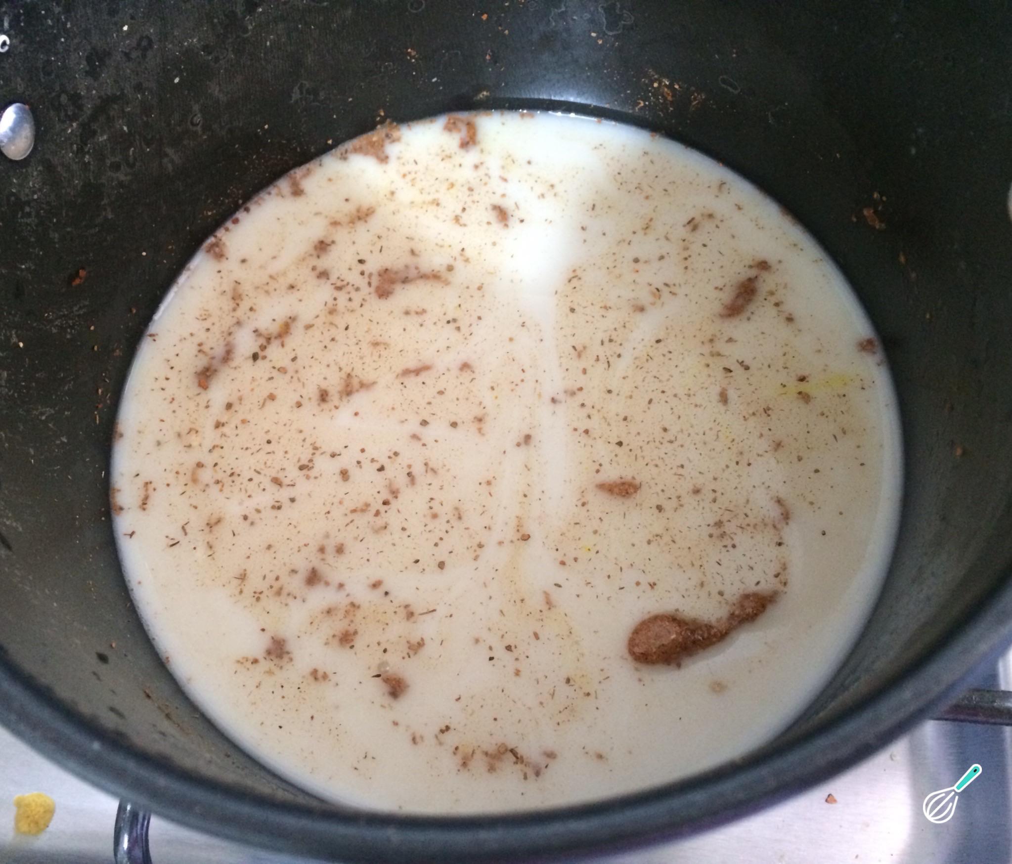 Numa panela à parte esquente em fogo baixo o leite de amêndoas com o açúcar e a canela, até que ferva e o açúcar esteja dissolvido.