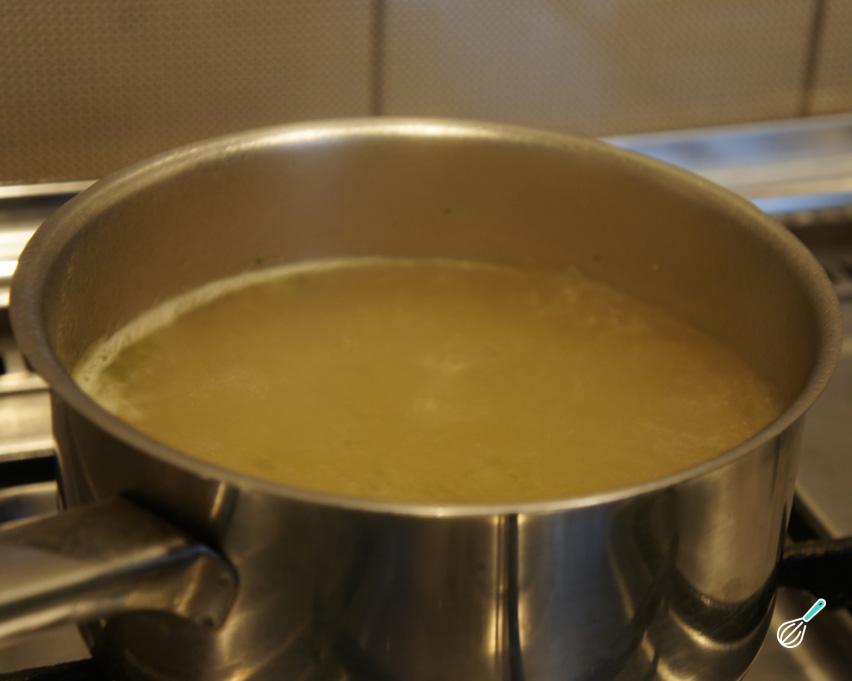 Em outra panela dissolva o tablete de caldo de legumes em 1 litro de água. Adicione este caldo pouco a pouco no preparo anterior. Esse processo pode durar cerca de 35 minutos ou até que todos os ingredientes estejam cozidos.