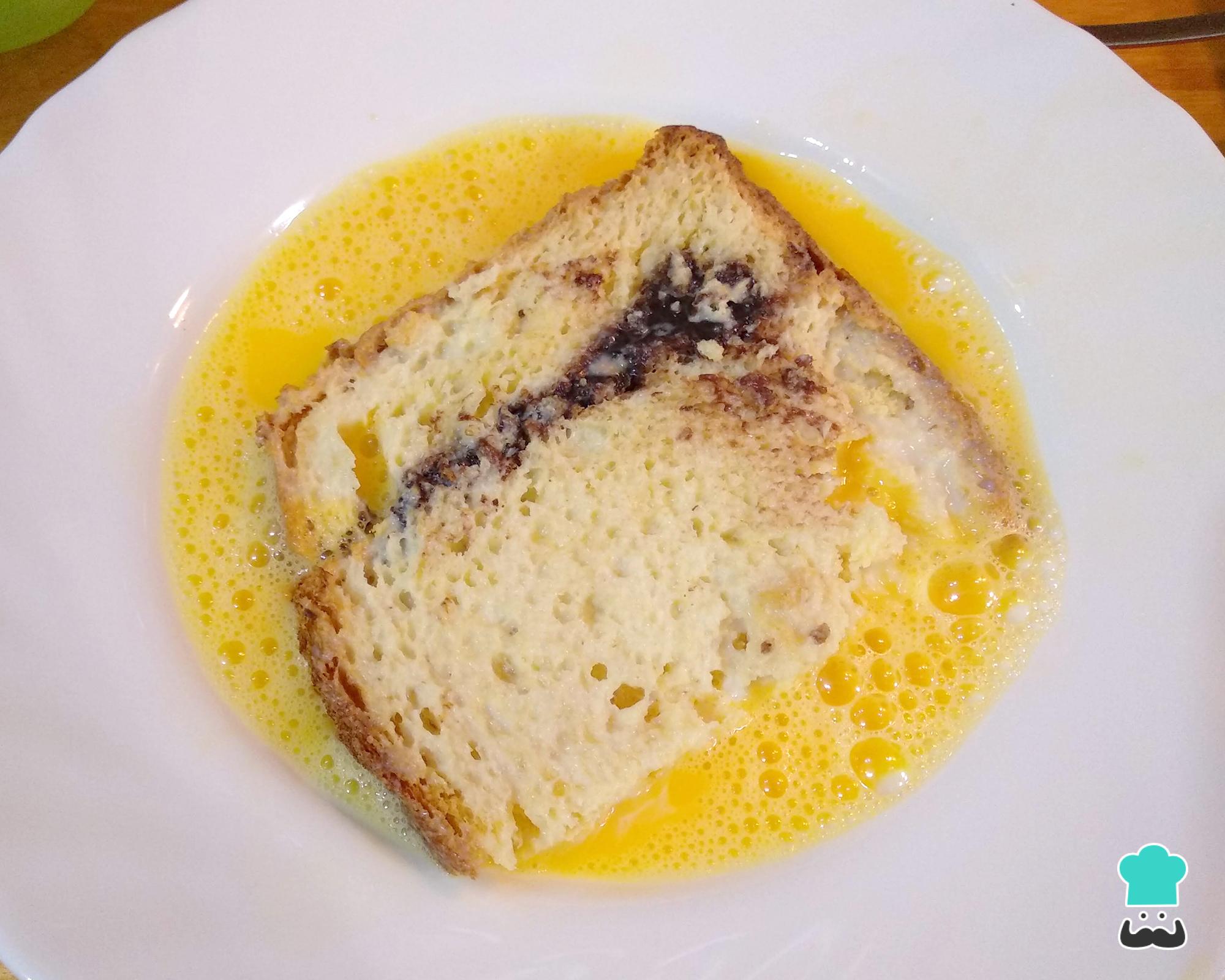 Depois passe as fatias de Panetone na mistura de ovo batido, envolvendo bem de um lado e do outro.