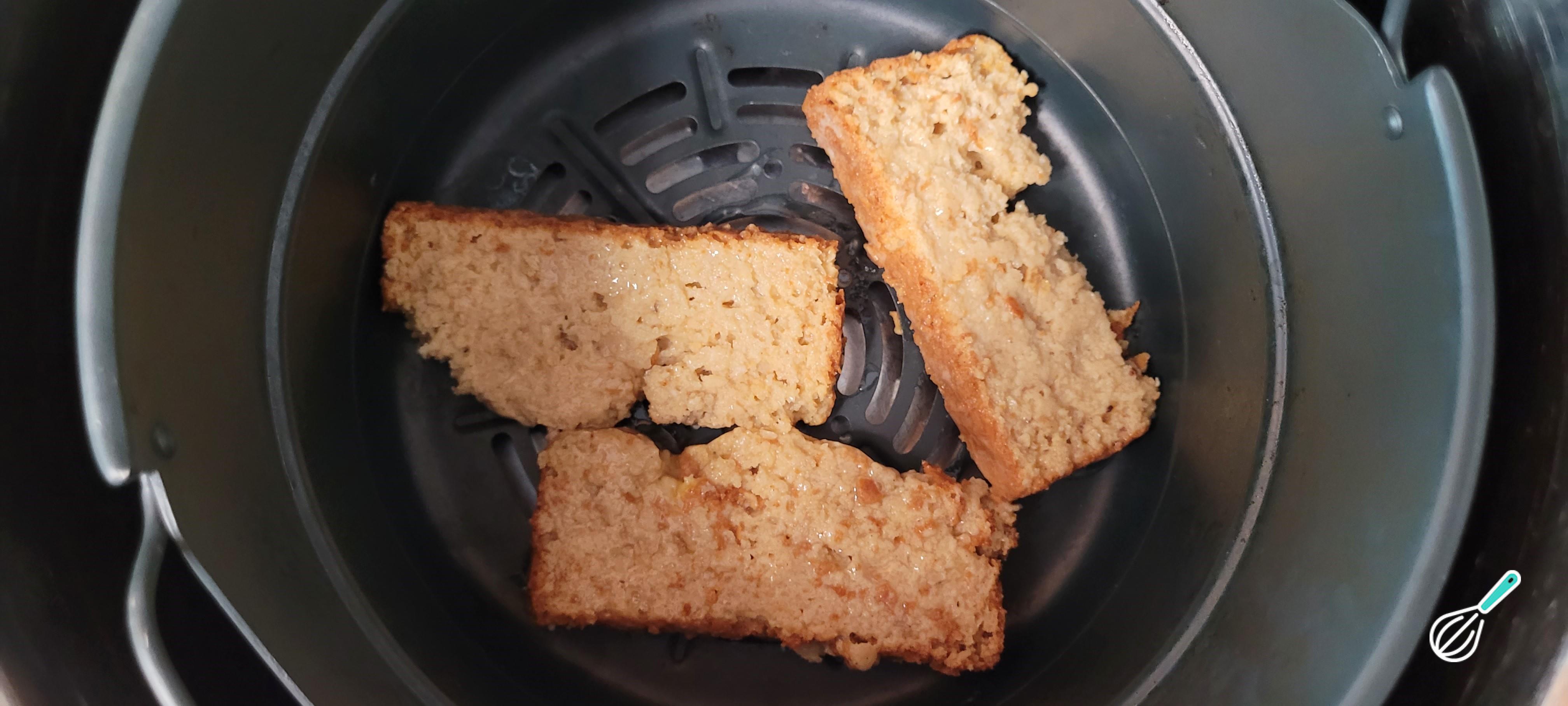 Separe os ingredientes para fazer sua rabanada fit na airfryer. Aqui usei um pão caseiro sem glúten feito apenas com aveia, mas pode usar o pão da sua preferência.