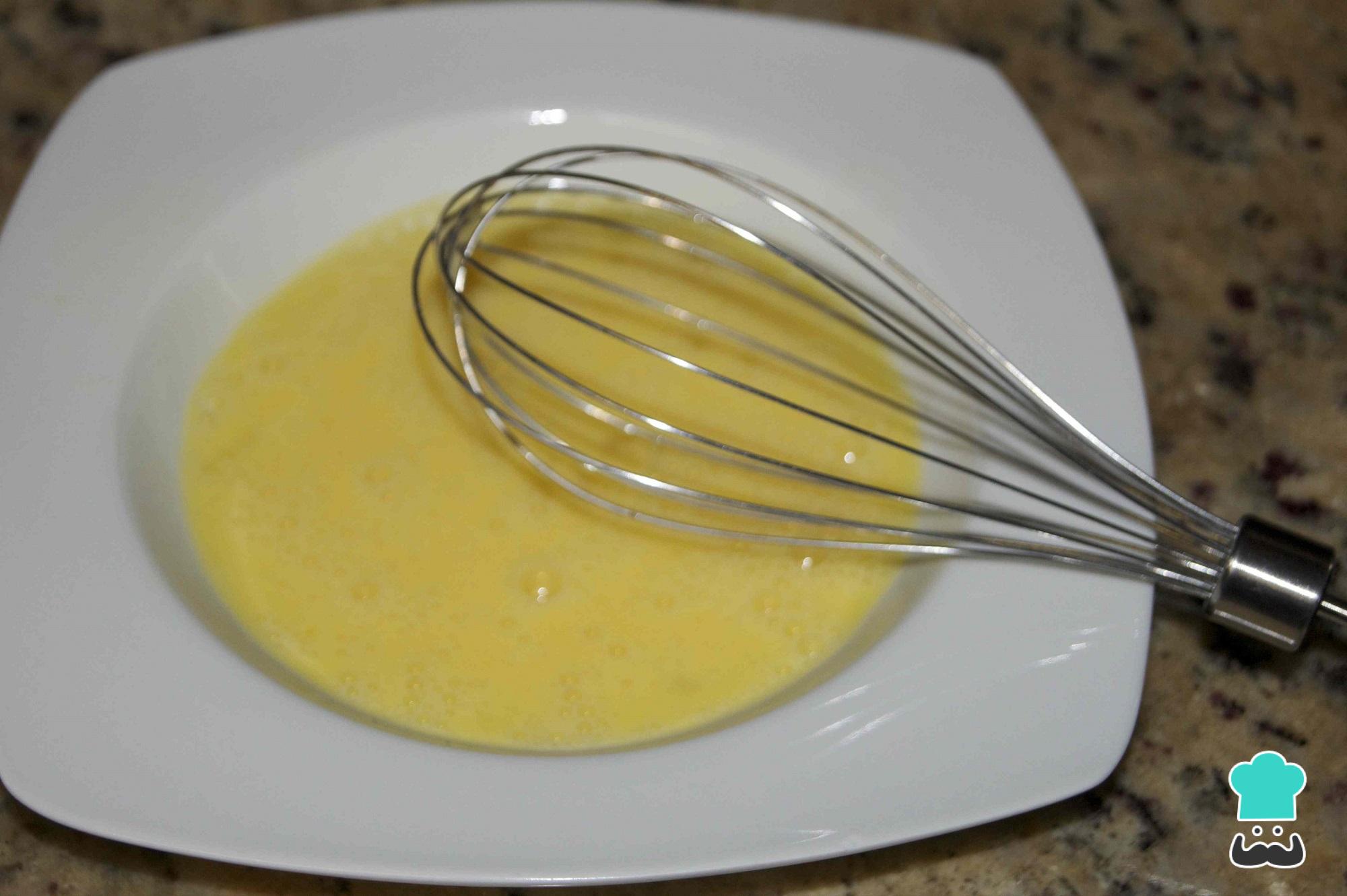 Bata ligeiramente os ovos em um prato fundo ou tigela, acrescente a água e misture ambos.