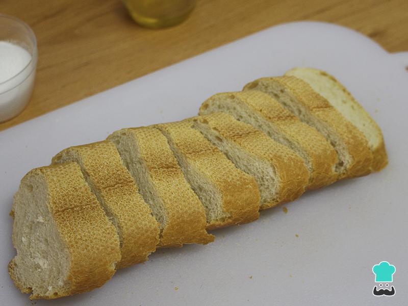 Para obter umas rabanadas perfeitas deverá usar pão do dia anterior (pão amanhecido, ligeiramente duro). Corte o pão em rodelas de, mais ou menos, 2 cm cada uma.