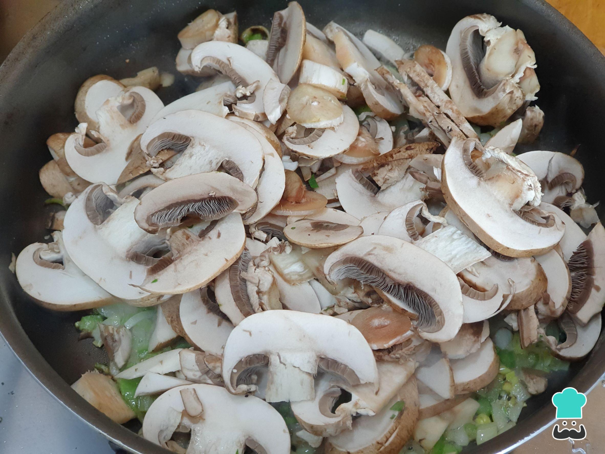 Adicione os cogumelos, misture e deixe cozinhar até os cogumelos ficarem macios.