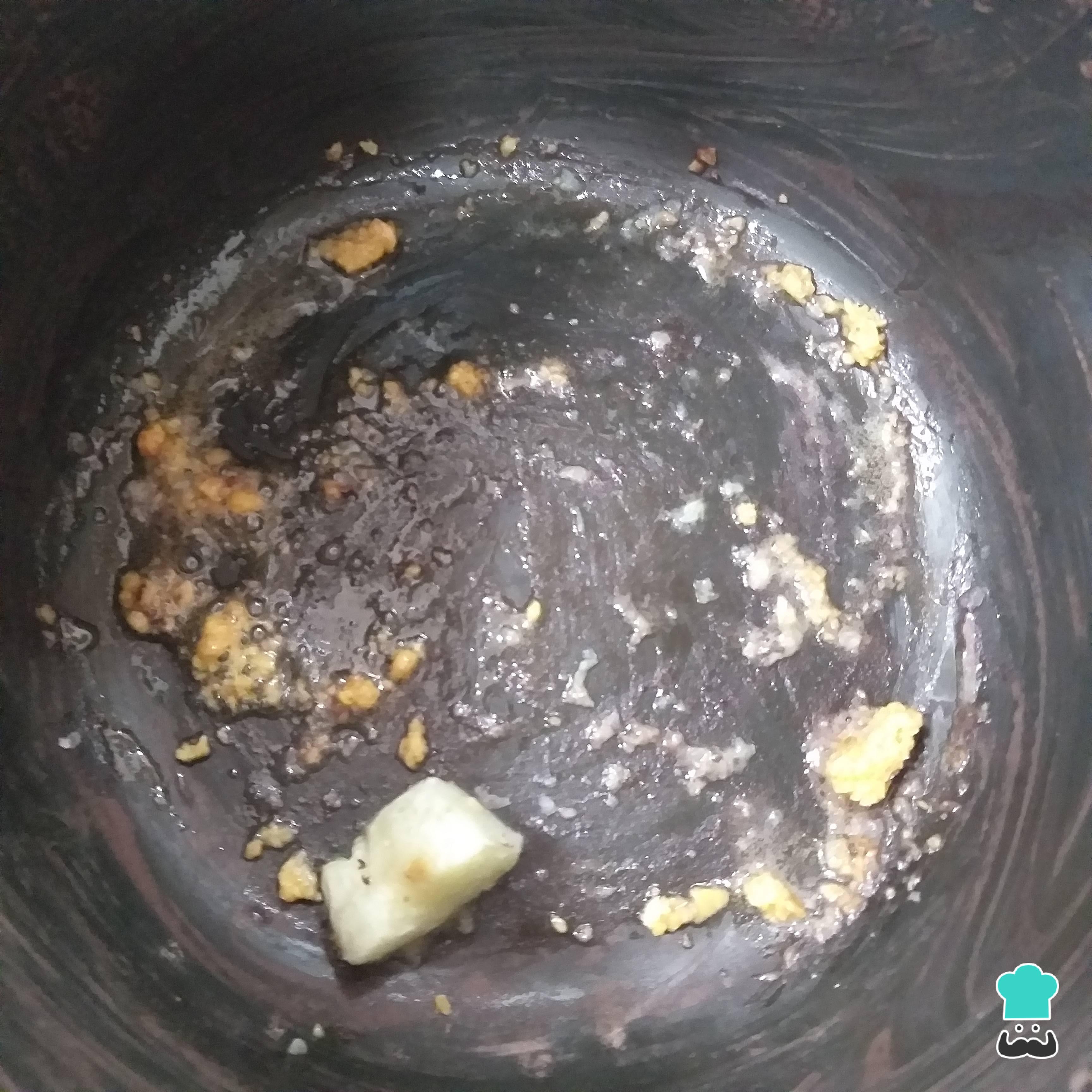 Em uma panela de pressão despeje um fio de azeite e acrescente o alho e a cebola cortados ou picados e o sal.