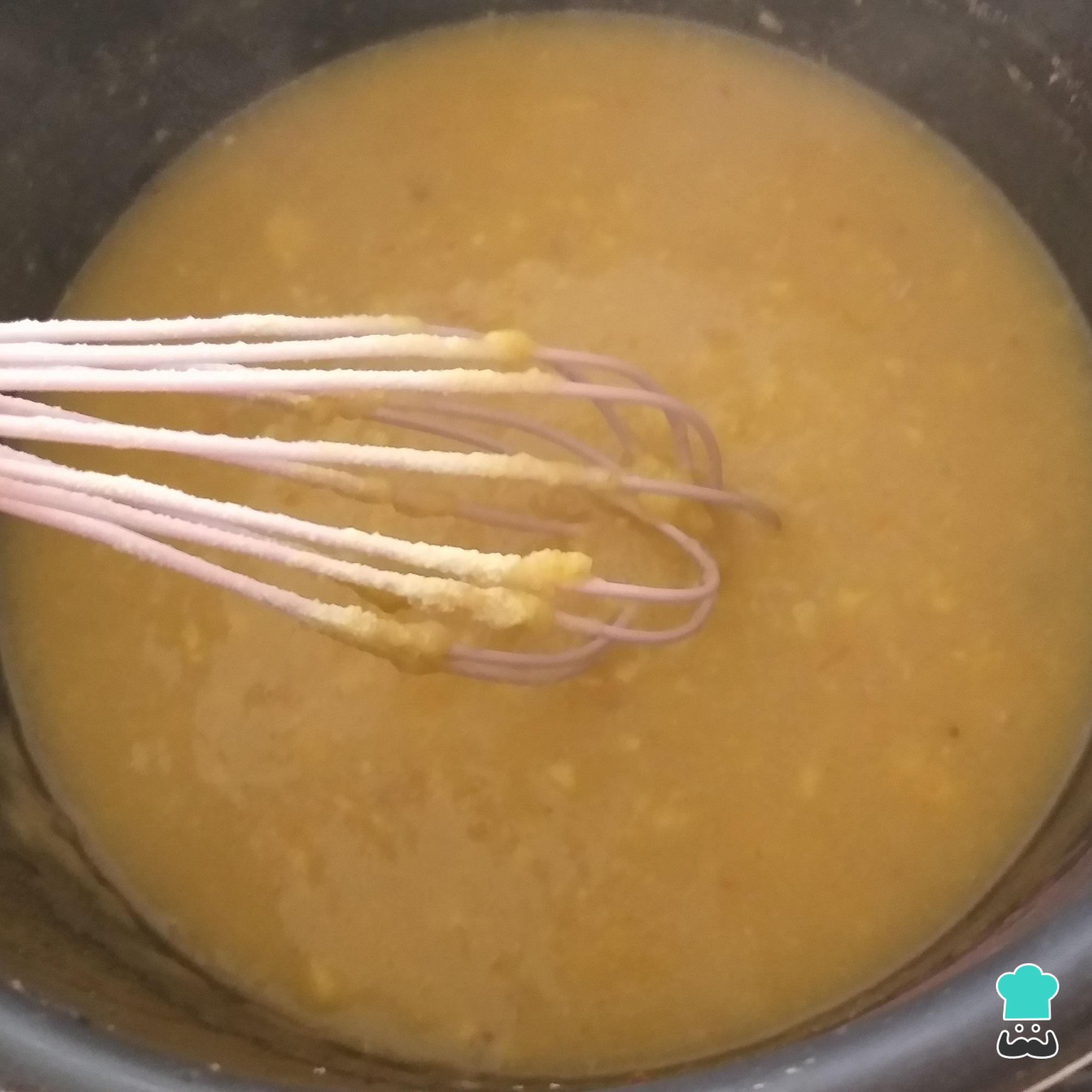 Feche a panela e mantenha em fogo alto. Assim que começar a apitar, abaixe o fogo e deixe cozinhar por 5 minutos. Desligue o fogo, espere sair a pressão. Abra a panela, coloque a manteiga e mexa por mais 2 minutos.