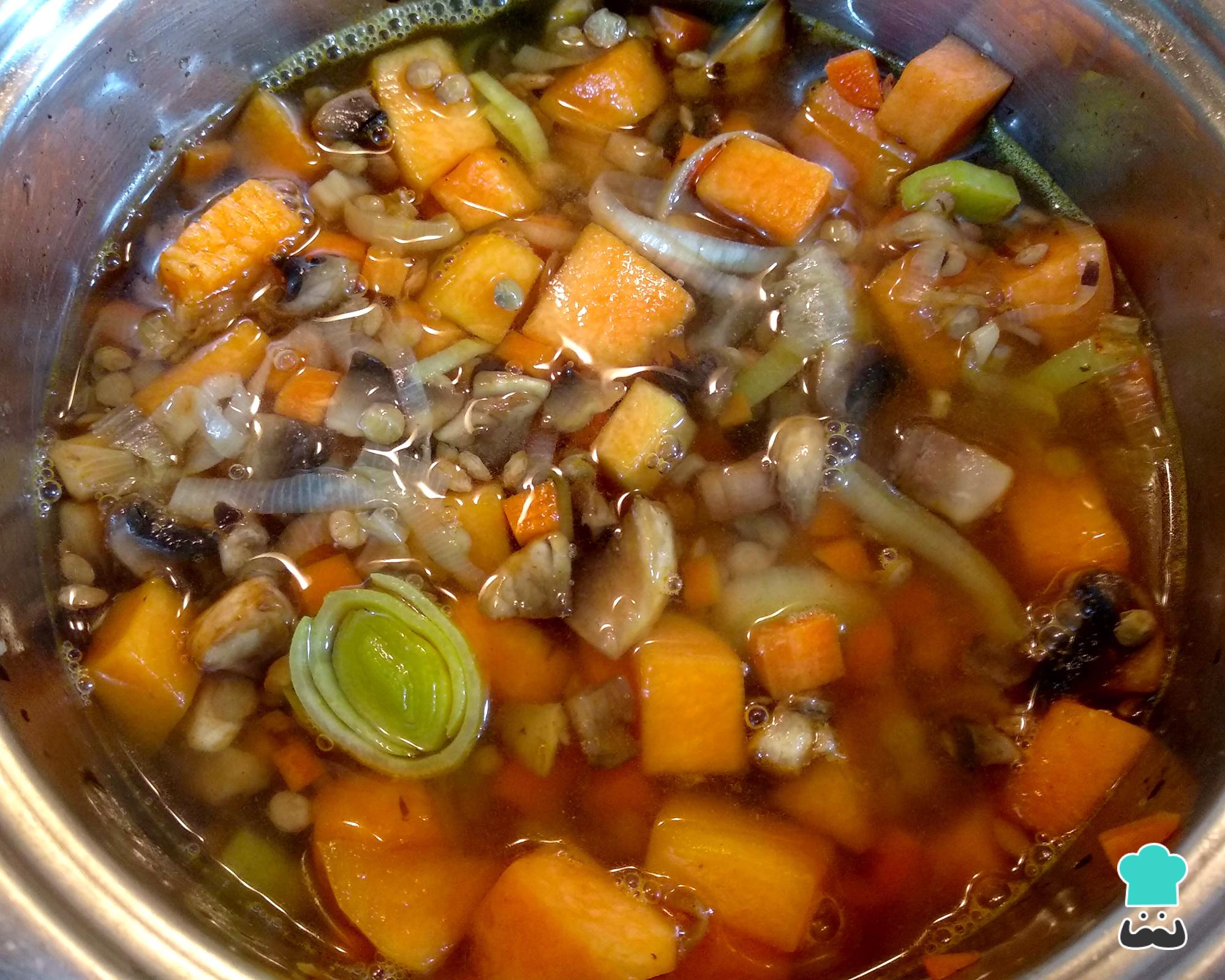 Dica: Se você quiser pode substituir a água por caldo de legumes, desse jeito o molho ficará mais nutritivo e saboroso. Quando a abóbora estiver macia esmague alguns pedacinhos dela, para ajudar a engrossar o molho.