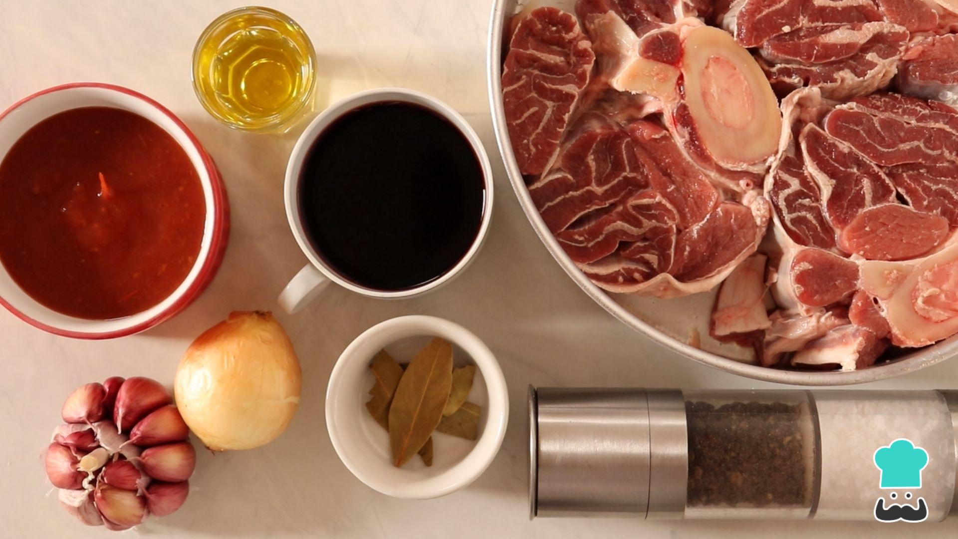 Separe os ingredientes necessários ao preparo desta receita com ossobuco.