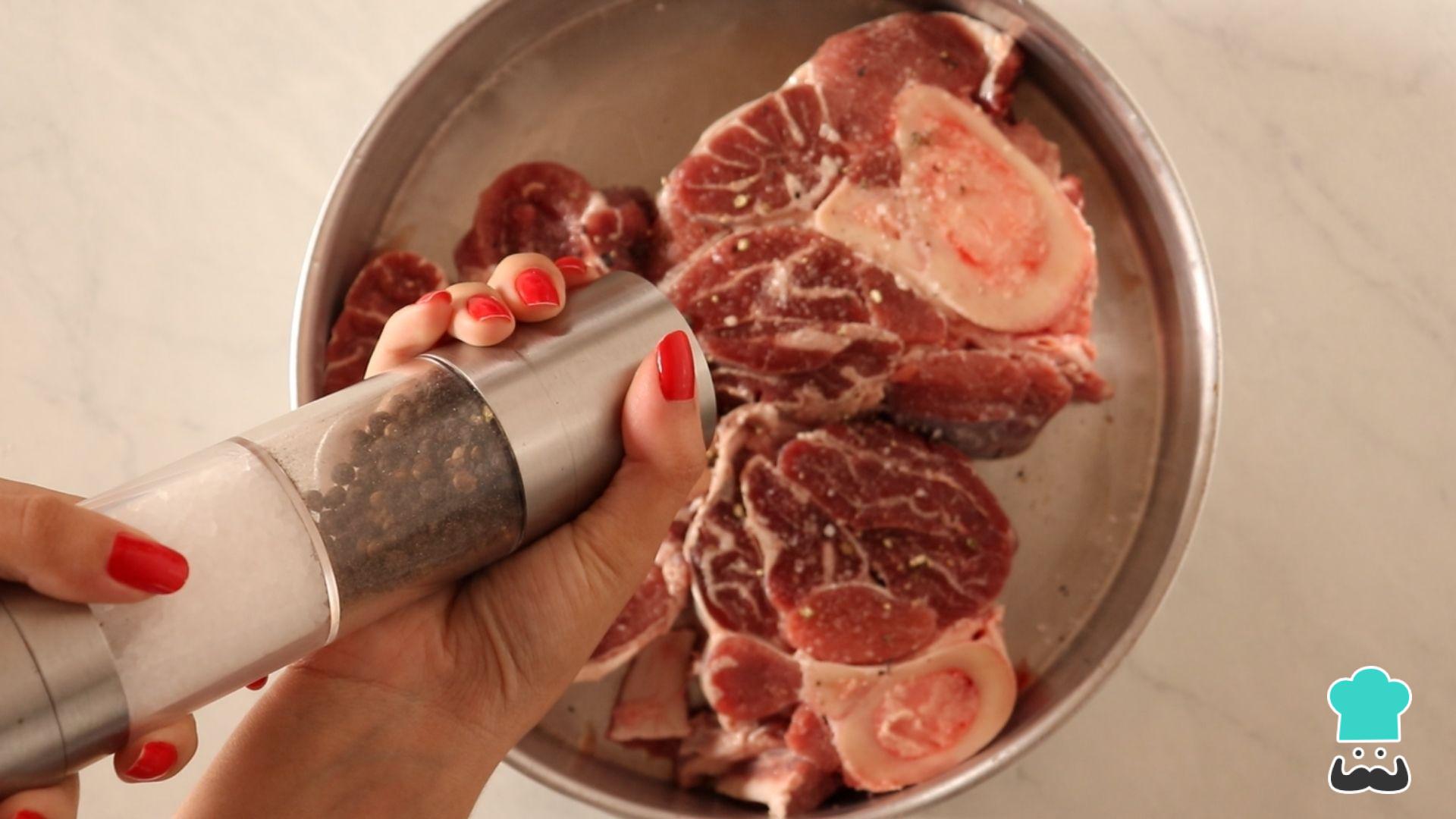 Tempere o ossobuco com sal e pimenta a gosto. Reserve.