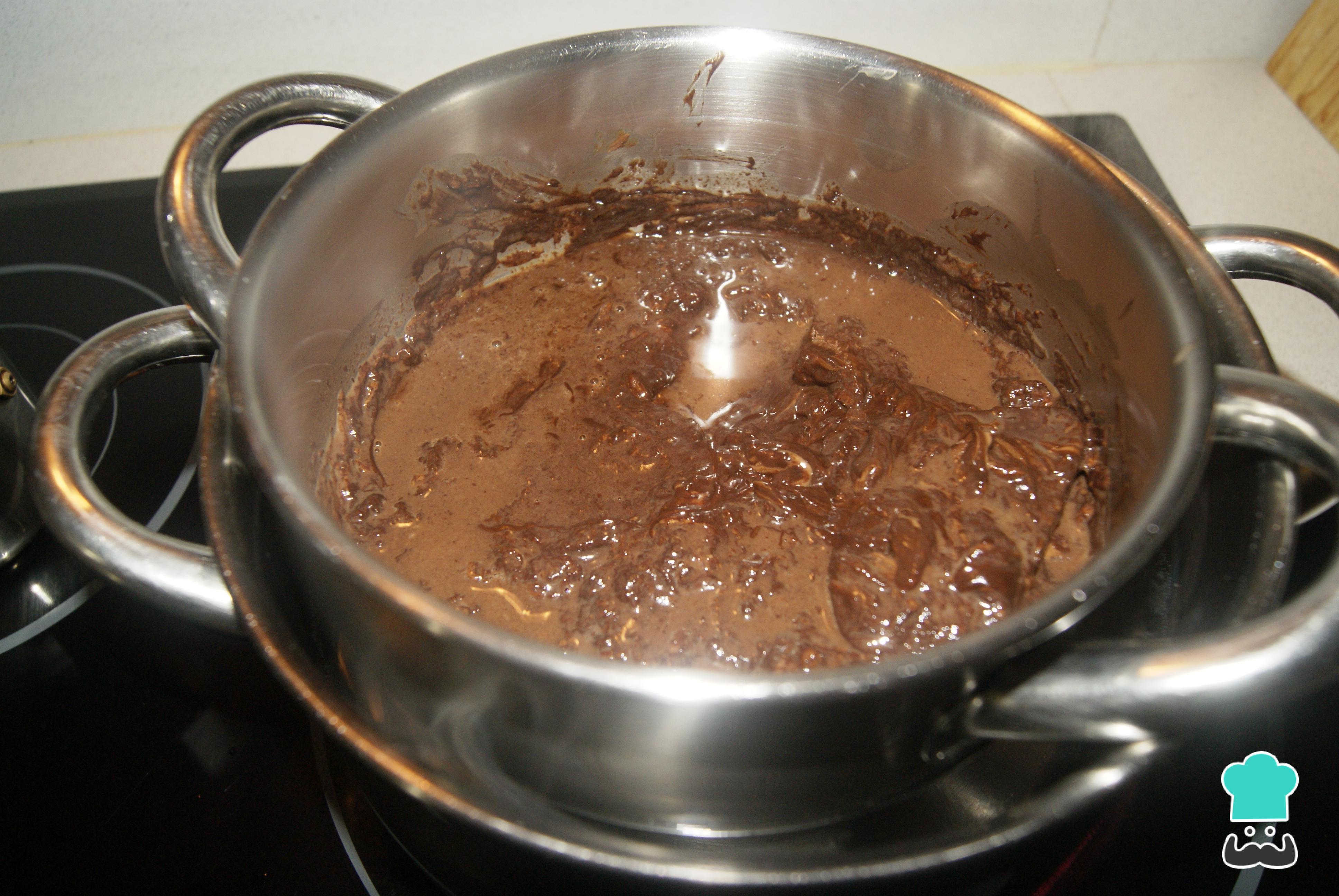 Em seguida derreta os chocolates em banho-maria, mexendo sempre, até que já não restem pedaços. Desligue o fogo, acrescente os amendoins e envolva bem.