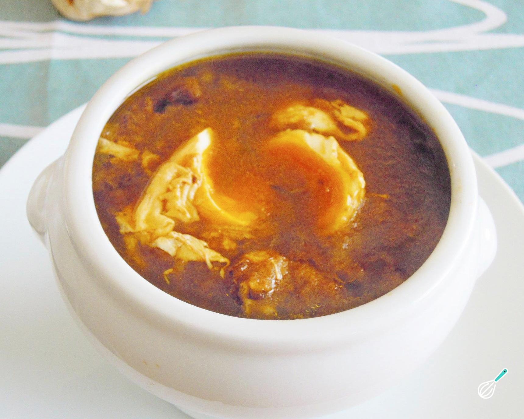 A sua sopa de alho negro está pronta! Esta sopa deve servir-se bem quente e é perfeita para esquentar em dias frios. Experimente e conte para nós o que você achou.