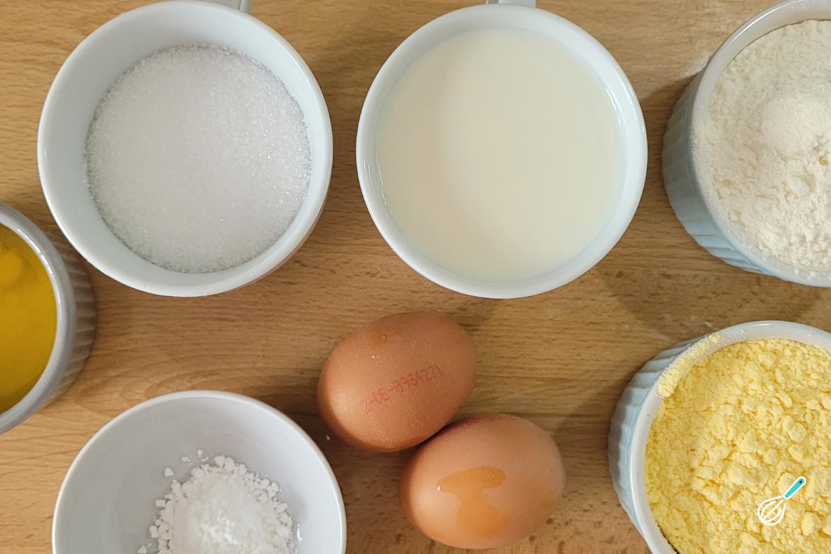 Separe os ingredientes para fazer seu bolo de fubá simples e fofinho.