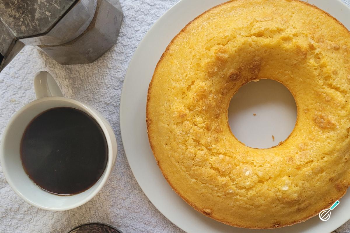 Quando sair do forno, espere esfriar antes de desenformar e já aproveita para passar aquele cafezinho para servir junto com o bolo! Caso queira incrementar ainda mais esse bolo, também fica perfeito com uma calda de goiabada!