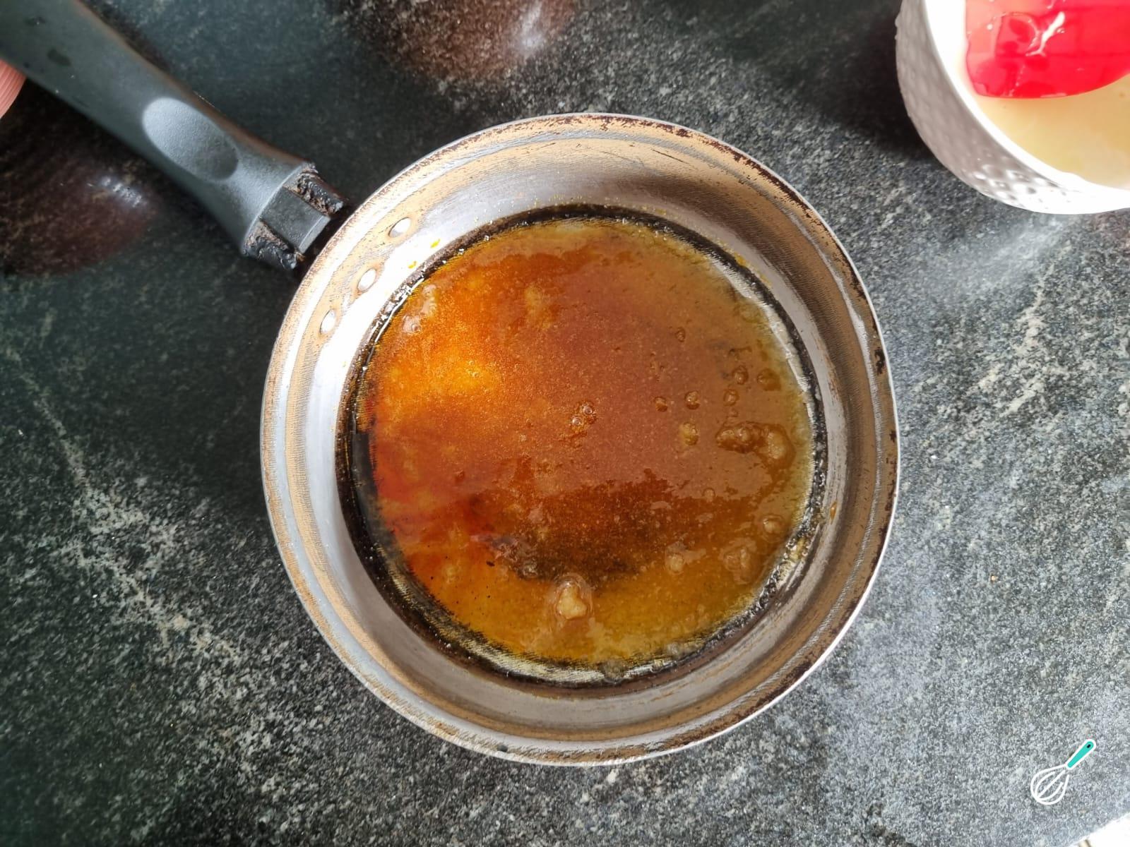 Dica: cuidado para não passar do ponto, pois isso fará o caramelo ficar amargo e não se preocupe se formar algumas pedrinhas de açúcar, pois elas derretem depois.