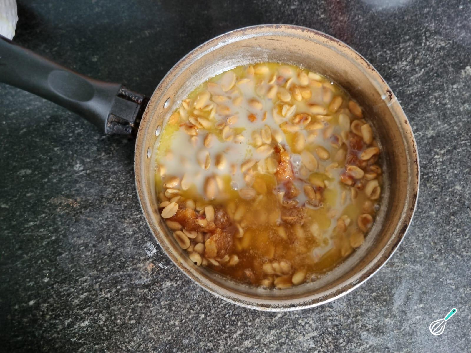Dica: foi utilizado o amendoim apenas partido ao meio, mas se você preferir pode picar grosseiramente com uma faca ou triturar no processador.