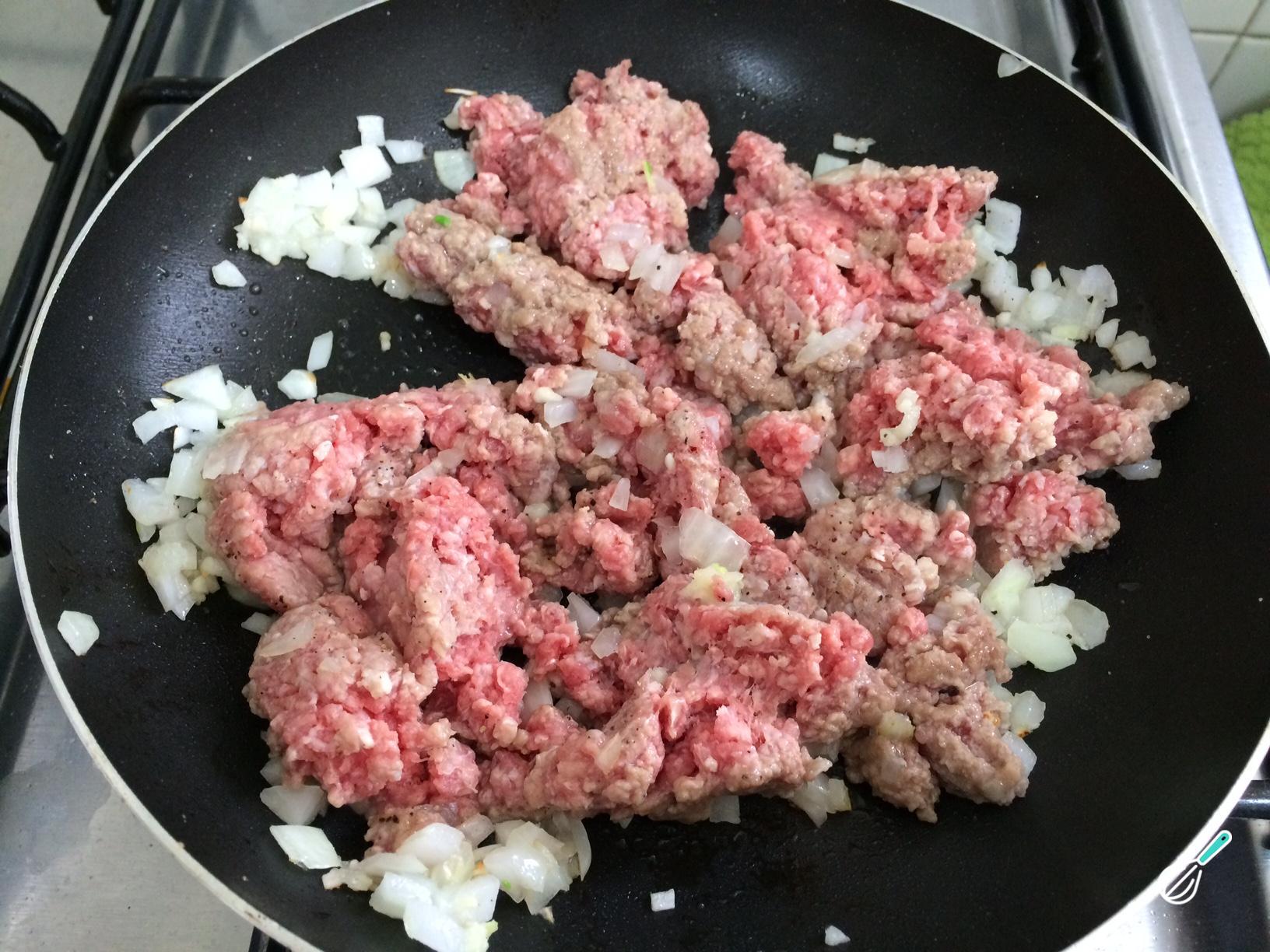 Acrescente a carne moída,tempere com sal e pimenta, e cozinhe em fogo alto até estar cozinhada e dourada.