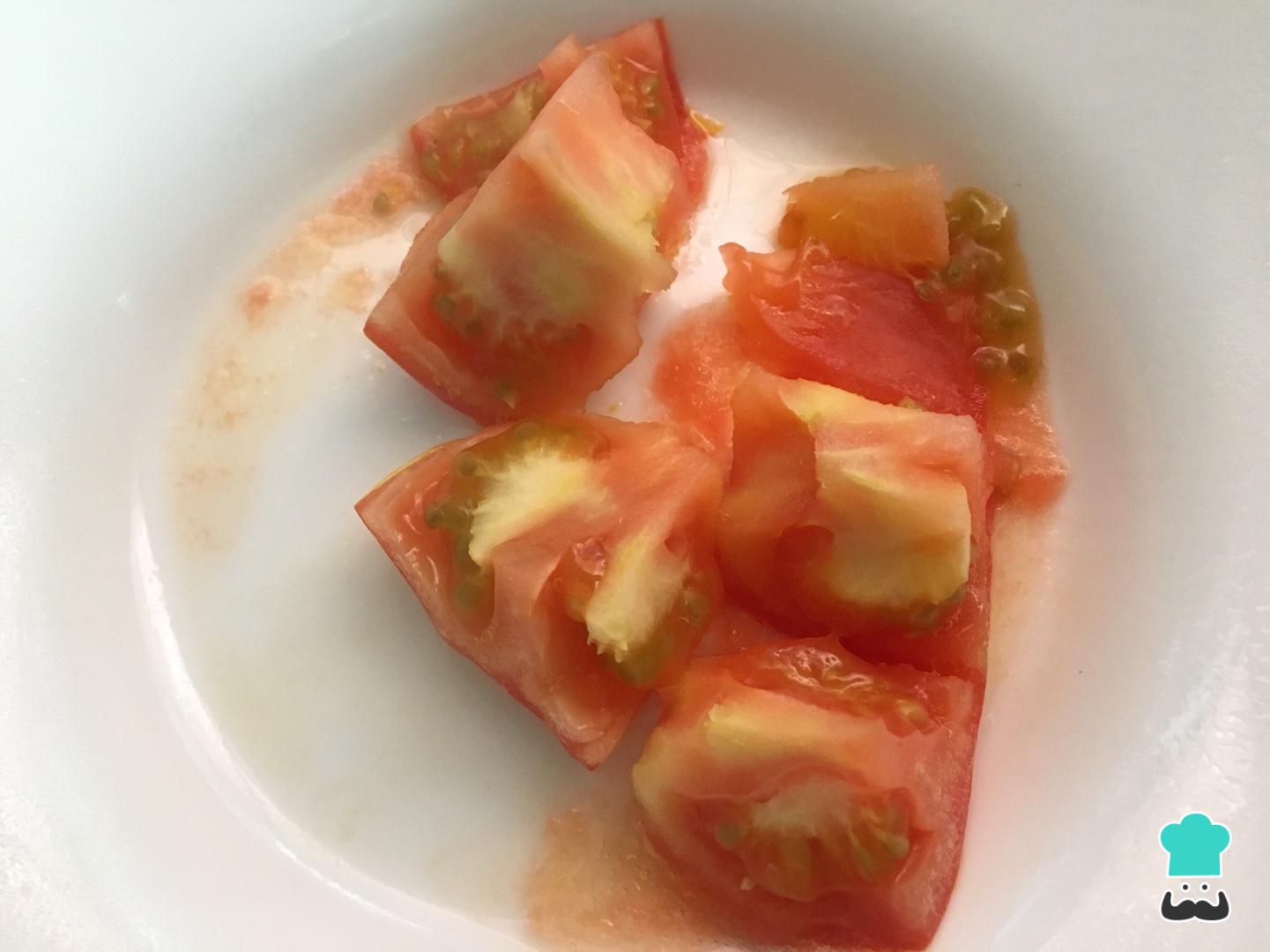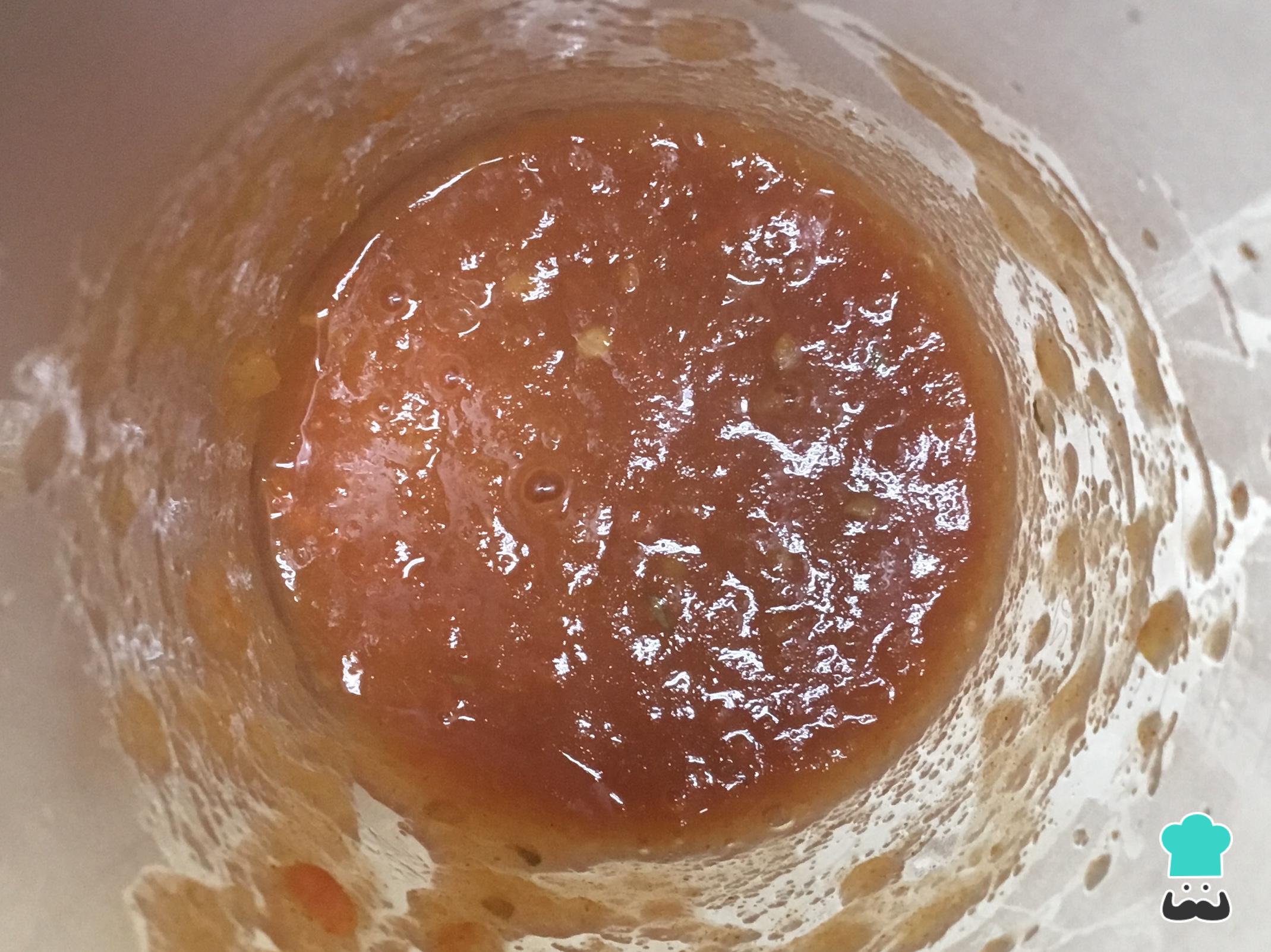 Em seguida bata o tomate no liquidificador com uma pitada de sal e páprica doce.