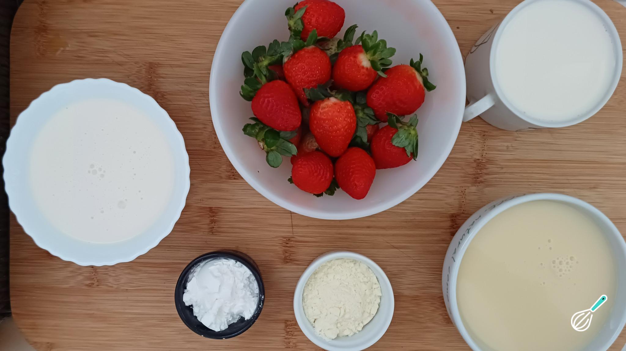 Separe os ingredientes necessários para o preparo desse recheio de morango para bolo!