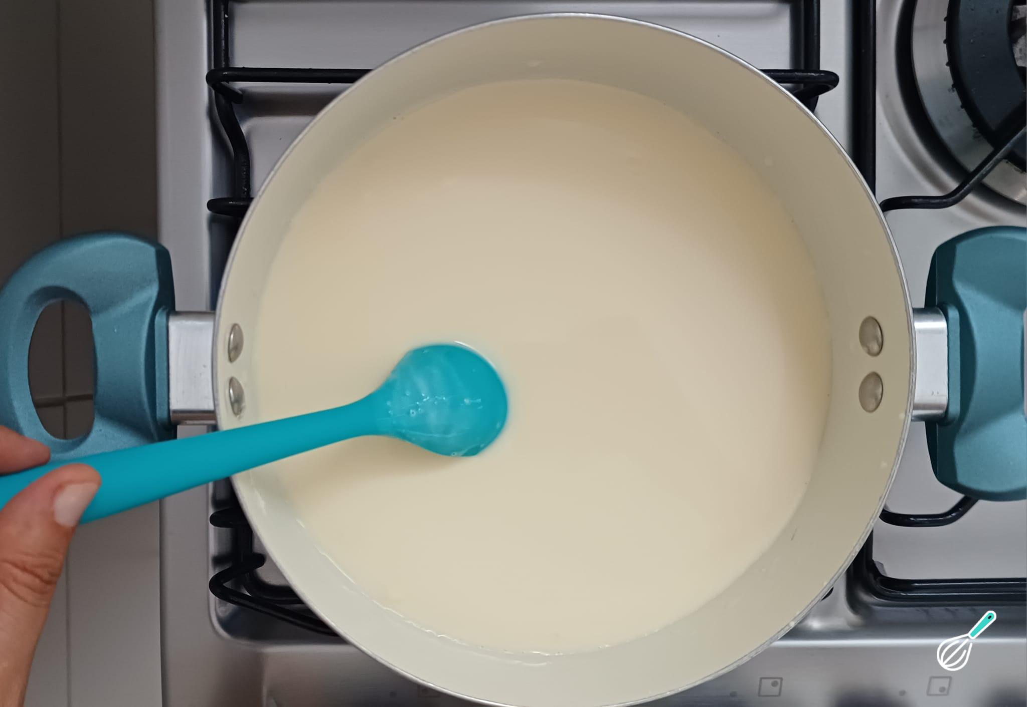 Deixe esse creme cozinhando até ficar bem encorpado, por cerca de 15 a 20 minutos, mexendo sempre para não queimar ou empelotar!