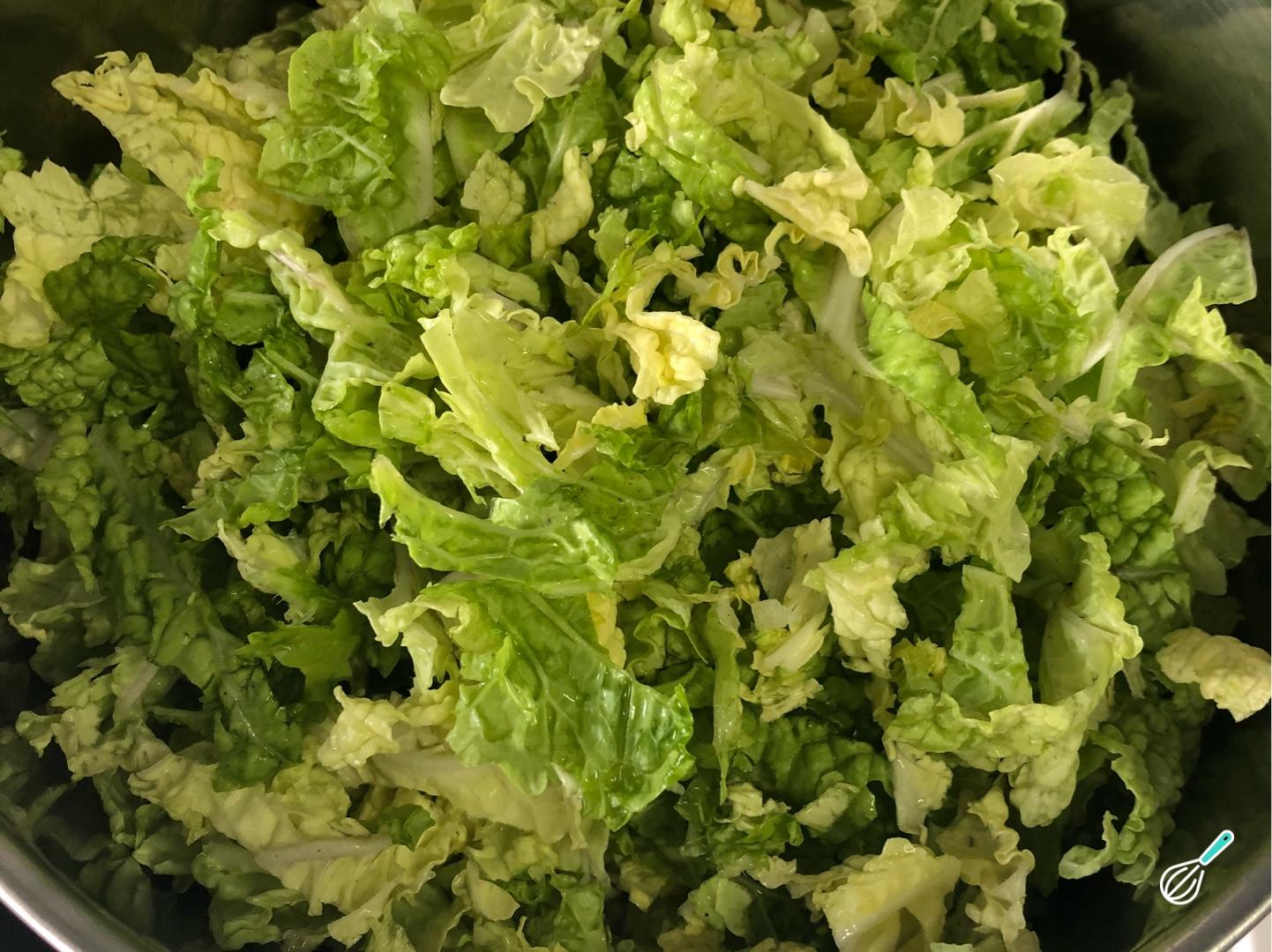 Coloque toda a acelga picada e refogue até as folhas murcharem completamente. Para isso você pode tampar a panela ou ir mexendo levemente.