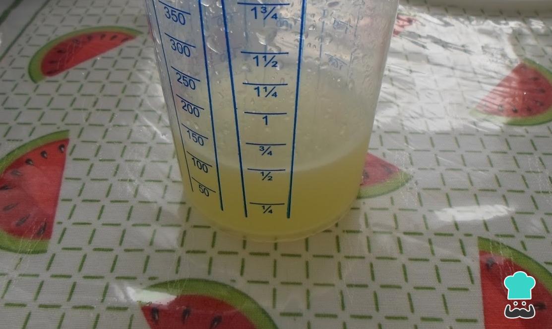 É muito fácil preparar este refresco de limão! O primeiro passo é extrair o suco dos dois limões.