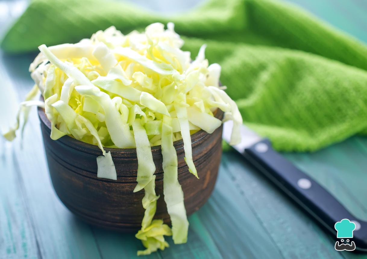 Comece seu repolho refogado com sardinha, lavando o repolho e cortando em tiras.